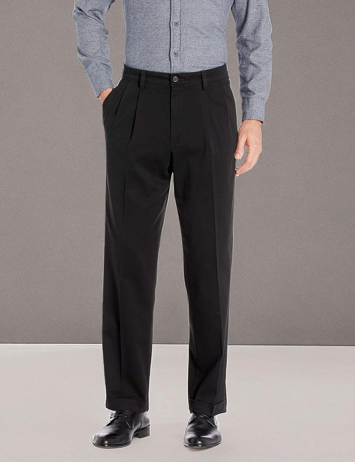 DOCKERS Men’s Relaxed Fit Easy Khaki Pants-Pleated(Black)