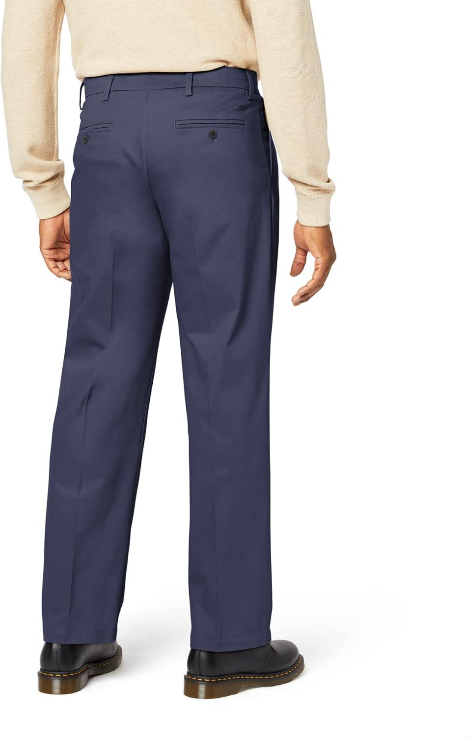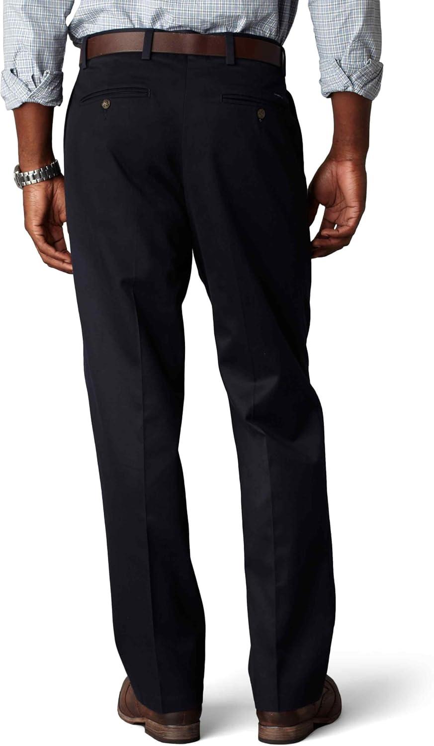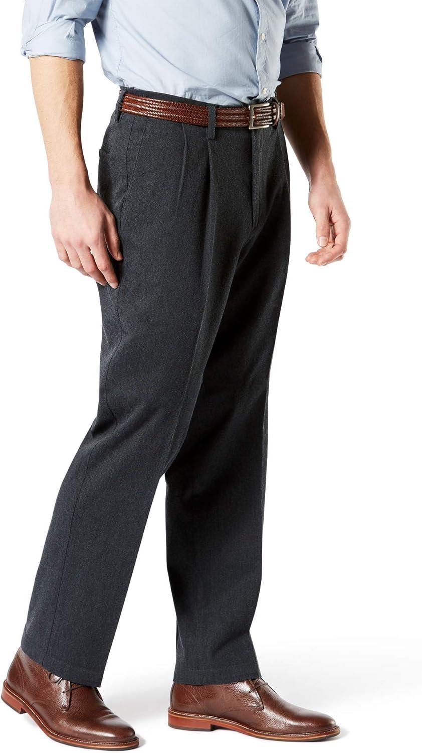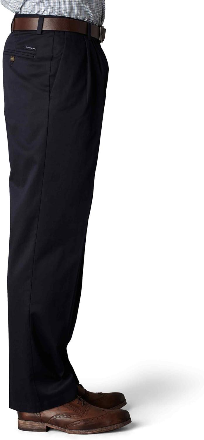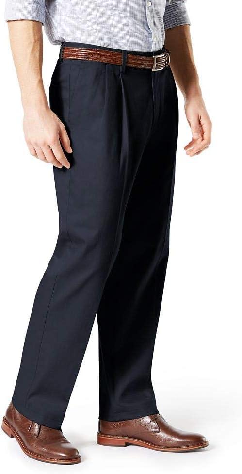 DOCKERS Men’s Relaxed Fit Signature Khaki Lux Cotton Stretch Pants-Pleated(Dockers Navy)
