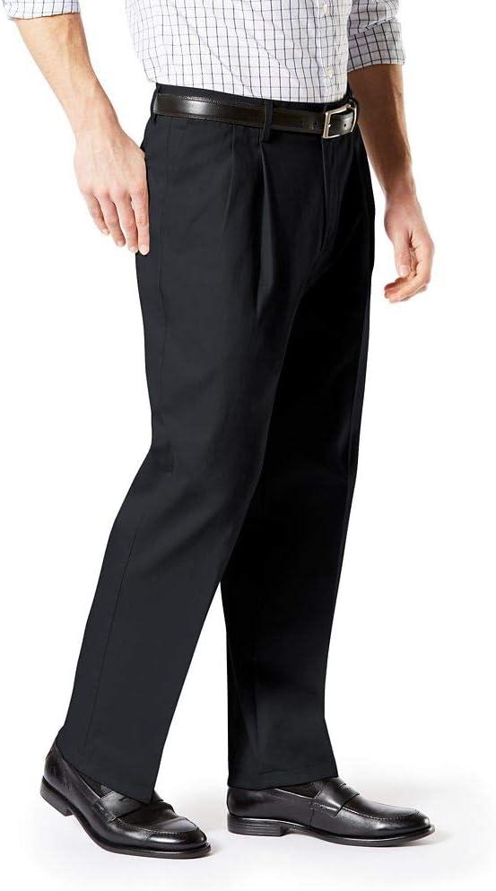 DOCKERS Men’s Relaxed Fit Signature Khaki Lux Cotton Stretch Pants-Pleated(Black)