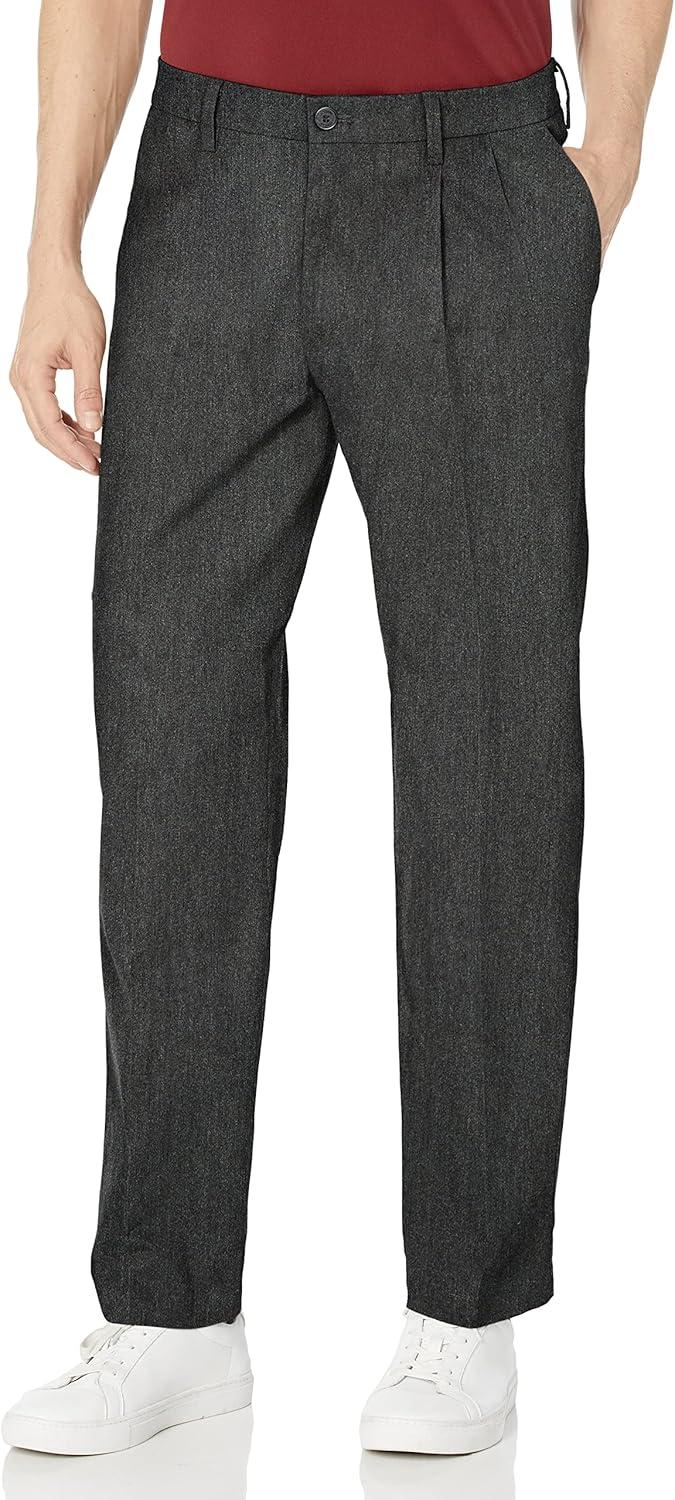 Classic Fit Signature Iron Free Khaki with Stain Defender Pants – Pleated (Regular and Big & Tall)((New) Charcoal Heather)