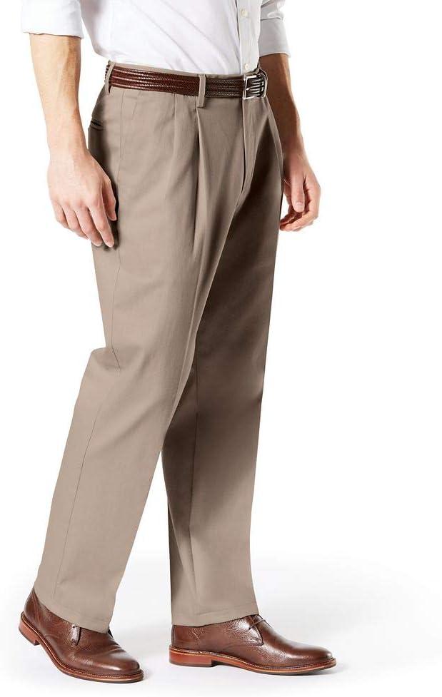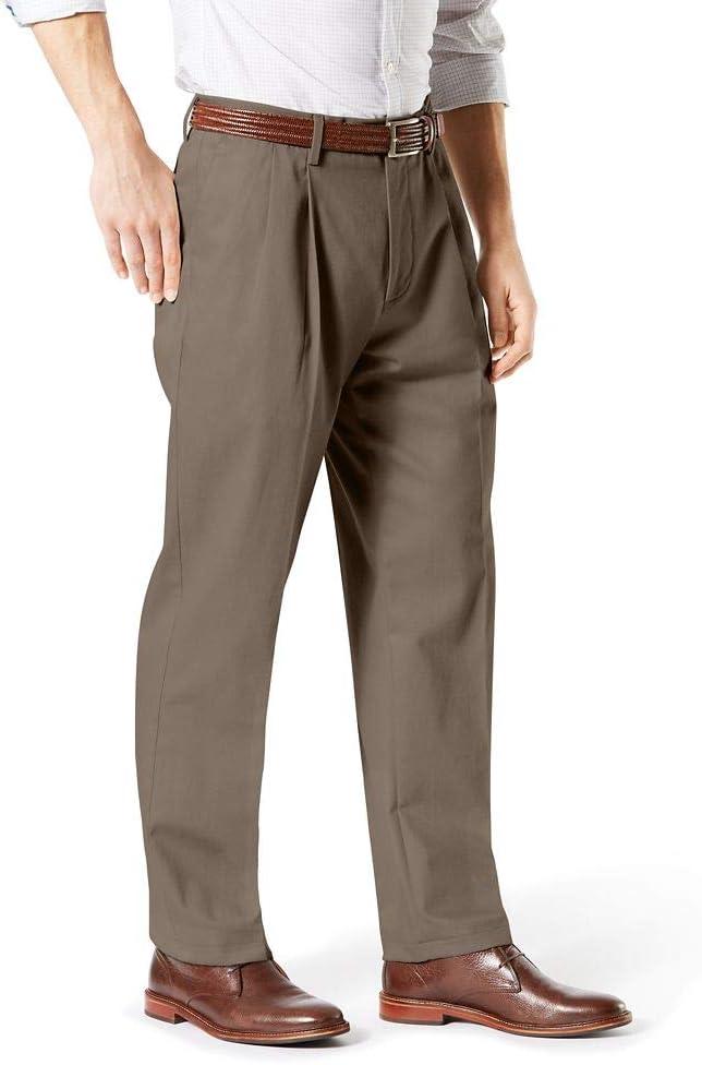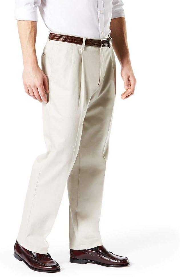 DOCKERS Men’s Relaxed Fit Signature Khaki Lux Cotton Stretch Pants-Pleated(Cloud)