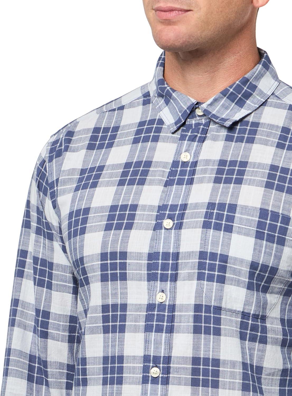 Dockers Men’s Regular Fit Long Sleeve Casual Shirt (Regular and Big & Tall)(Apex Slub Vintage Indigo – Plaid)