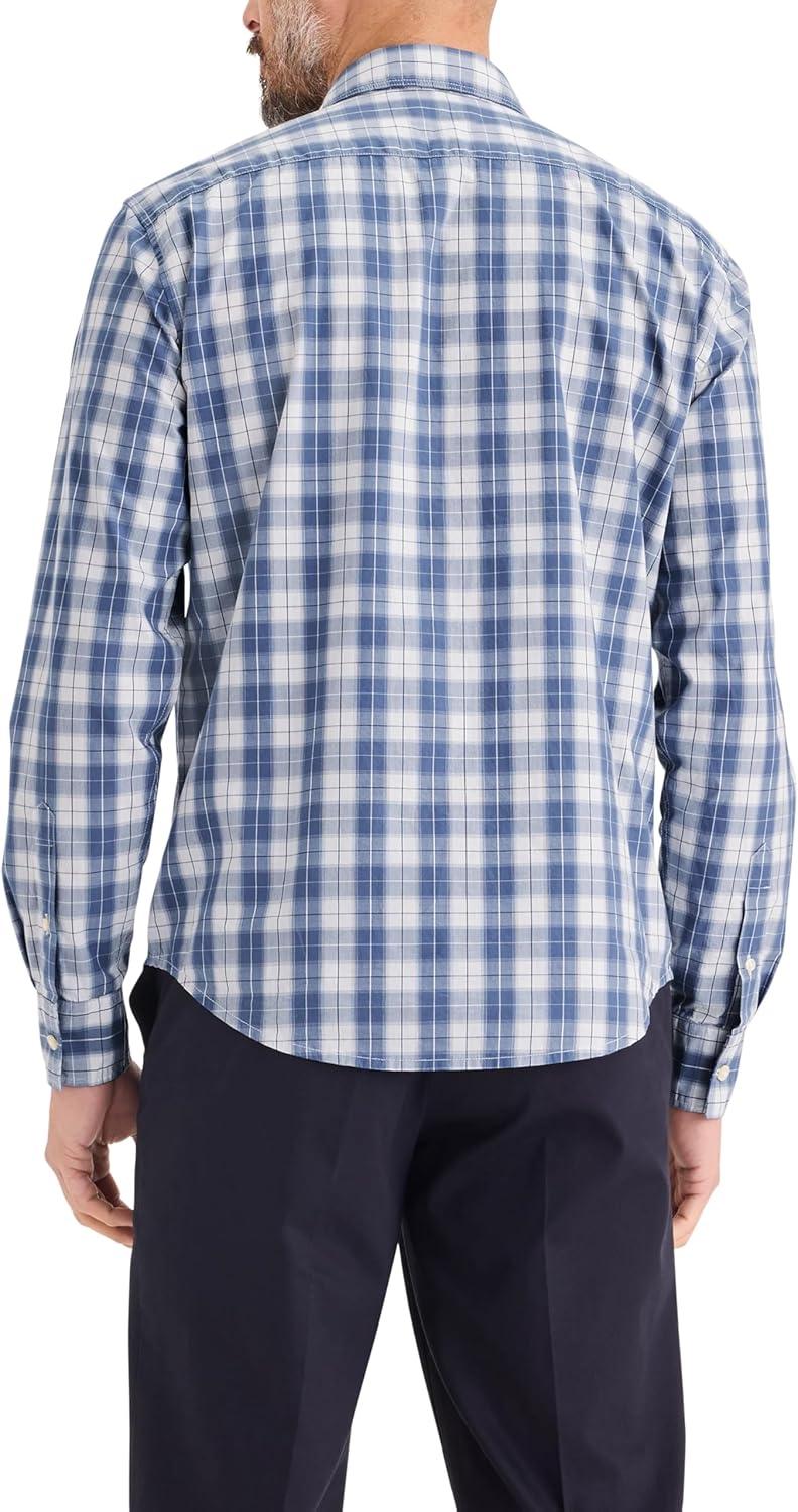DOCKERS Men’s Ultimate Shirt Long Sleeve Regular Fit(Deckerson Poplin Ocean Blue Plaid)