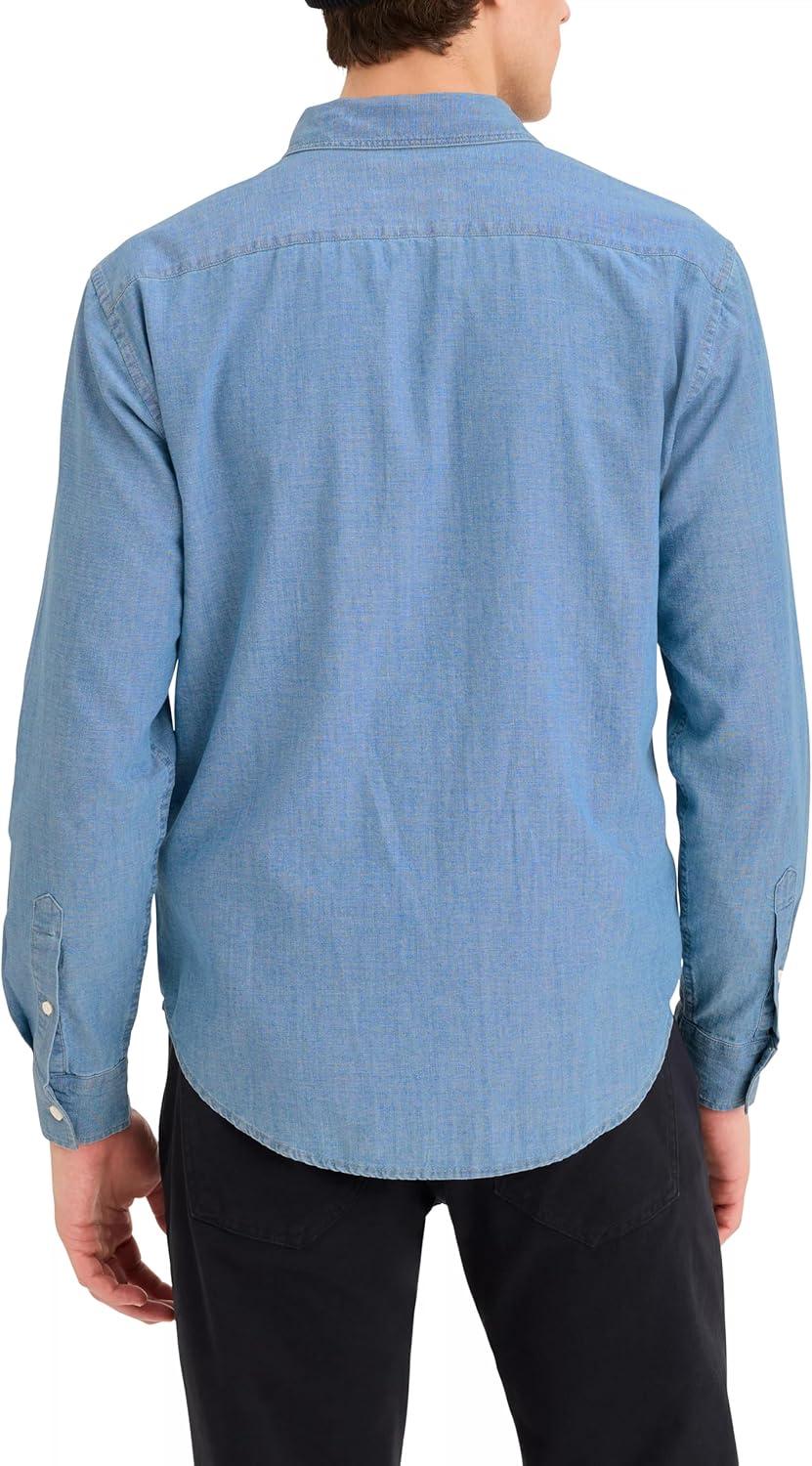 Dockers Men’s Regular Fit Long Sleeve Casual Shirt (Regular and Big & Tall)(Dark Blue Wash – Solid (Chambray))