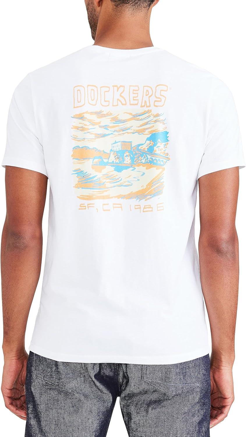 Dockers Mens Slim Fit Short Sleeve Graphic Tee Shirt(City By the Bay Lucent White)