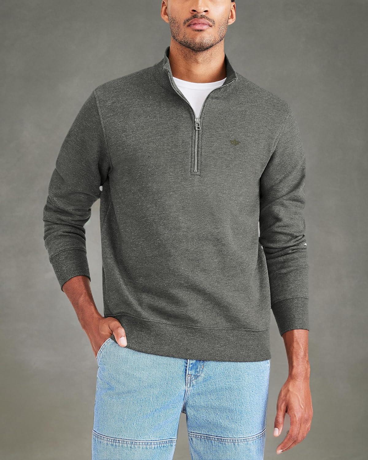 Dockers Men’s Regular Fit Long Sleeve 1/4 Zip Fleece Sweatshirt(Dark Grey Heather)
