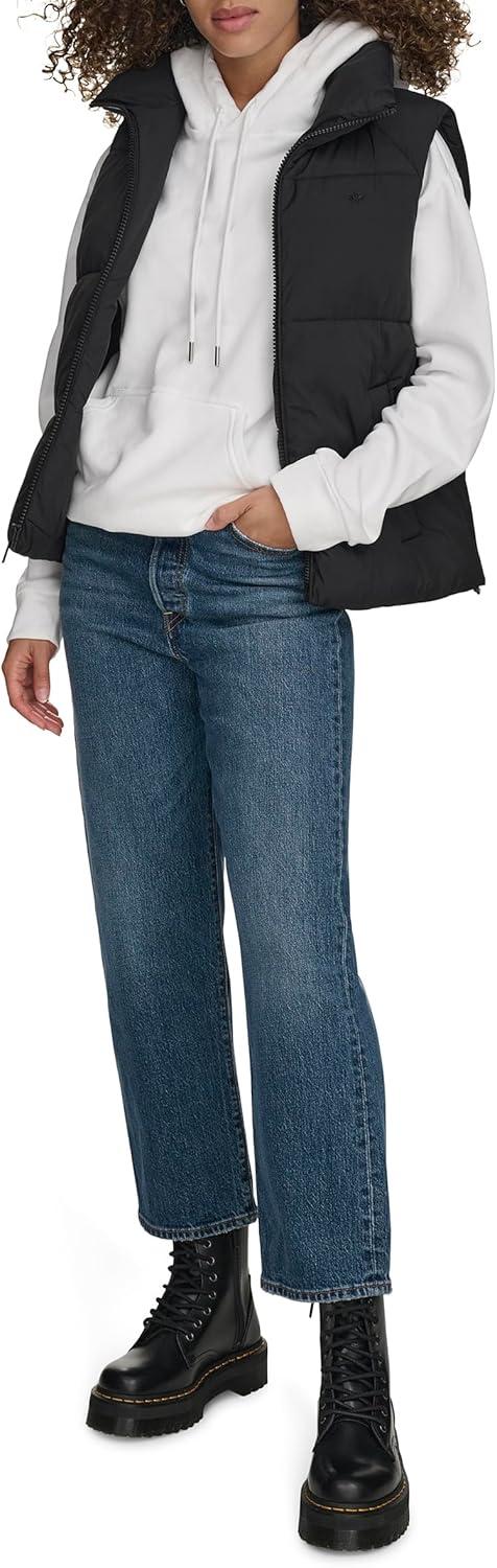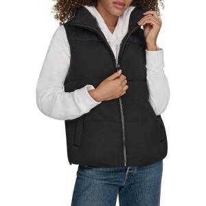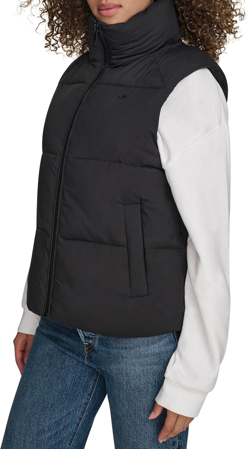 DOCKERS womens Ultra Filled Quilted Bubble Puffer Vest(Black)