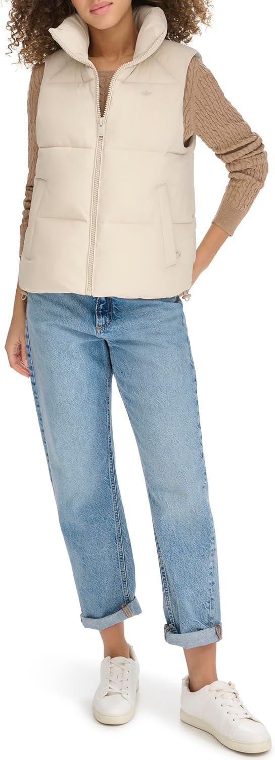 DOCKERS womens Ultra Filled Quilted Bubble Puffer Vest(Khaki)