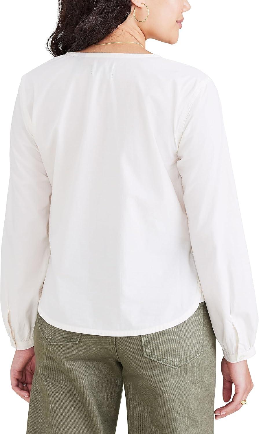 Dockers Womens Regular Fit Long Sleeve Flowy Blouse Shirt(Ava Egret White (Poplin))