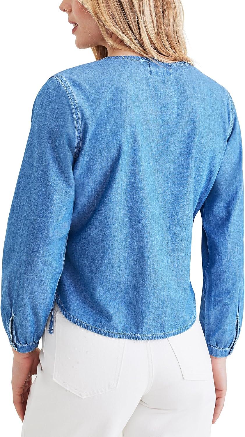 Dockers Womens Regular Fit Long Sleeve Flowy Blouse Shirt(Coronado Light Blue Rinse (Twill))