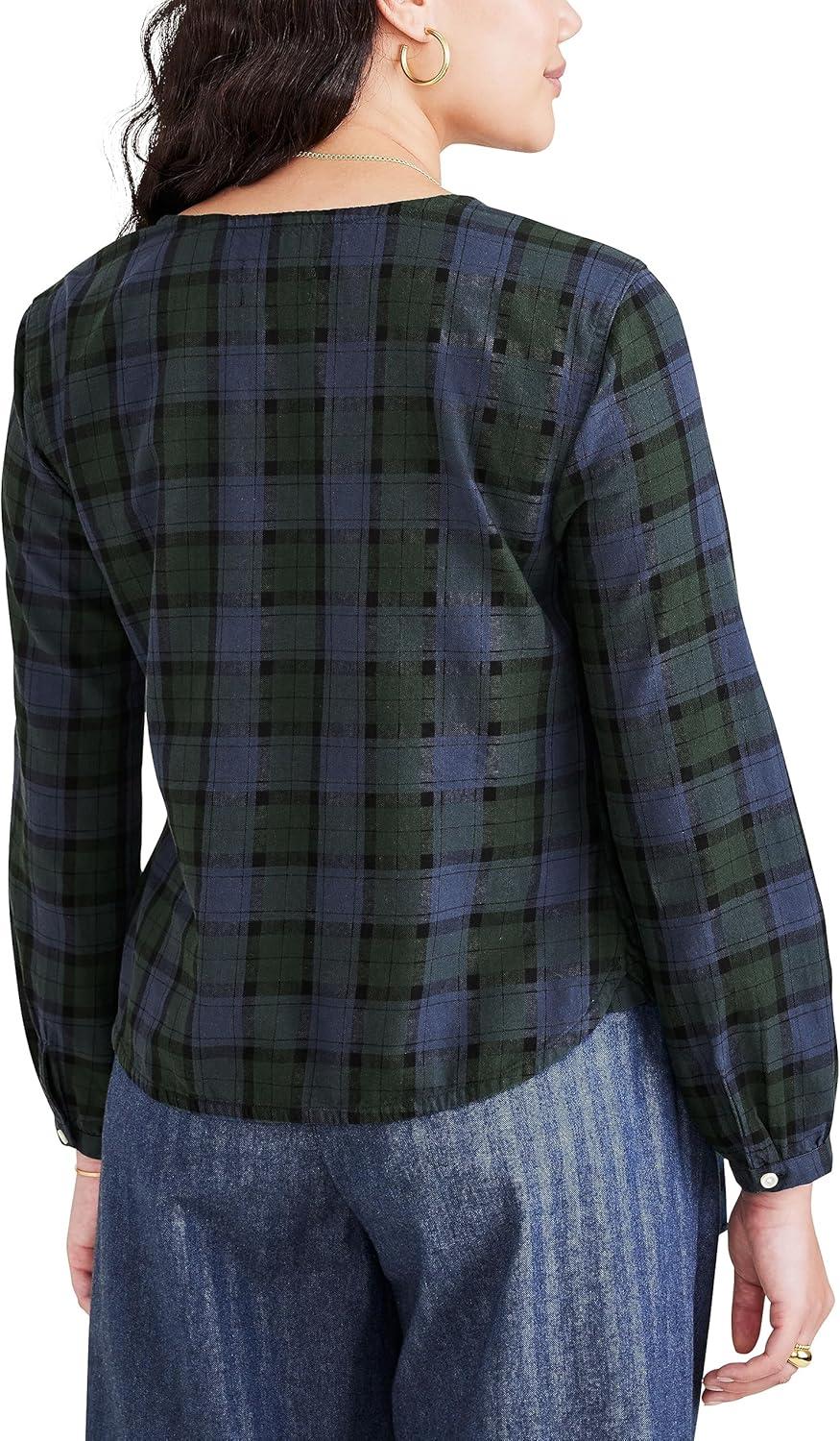 Dockers Womens Regular Fit Long Sleeve Flowy Blouse Shirt(Navy Blazer – Monclair Plaid (Twill))