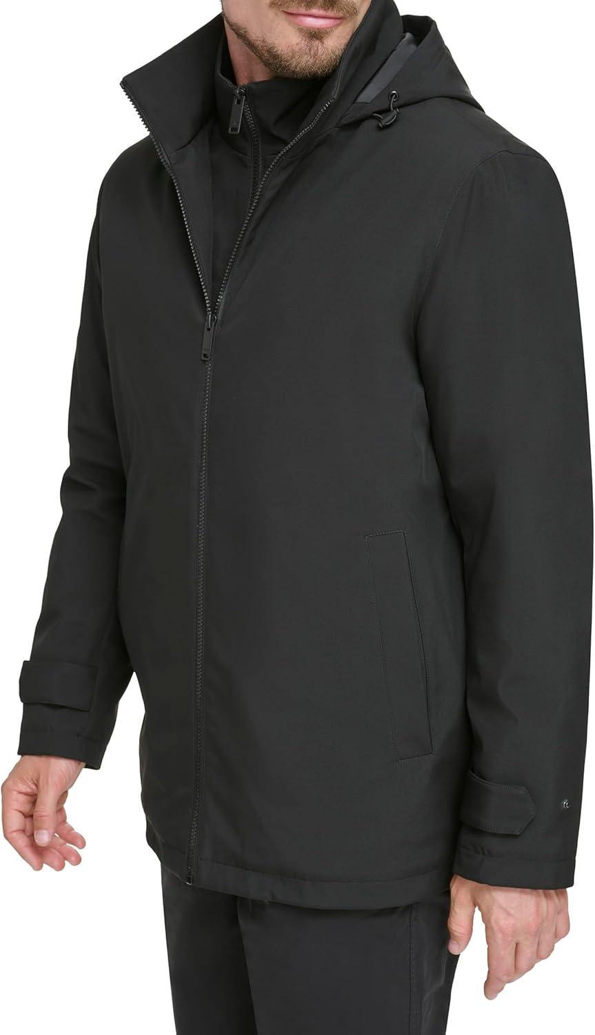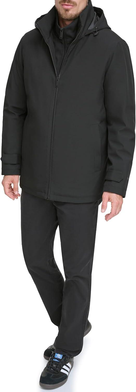 DOCKERS Men’s Dwight Soft Shell Bib Jacket(Black Hooded)