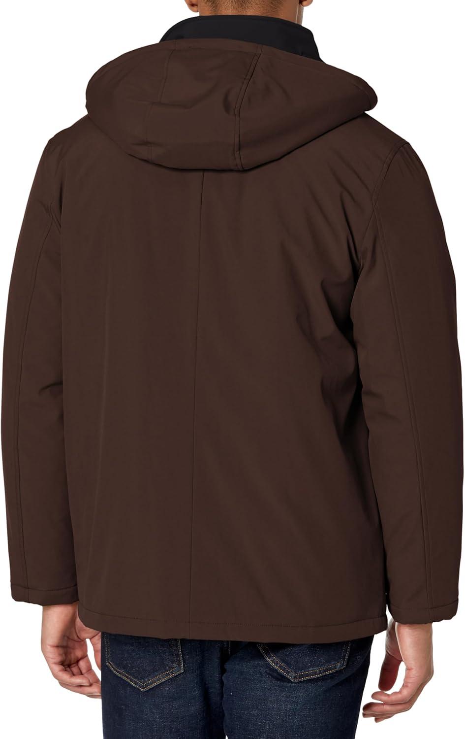 DOCKERS Men’s Dwight Soft Shell Bib Jacket(Dark Brown Hooded)