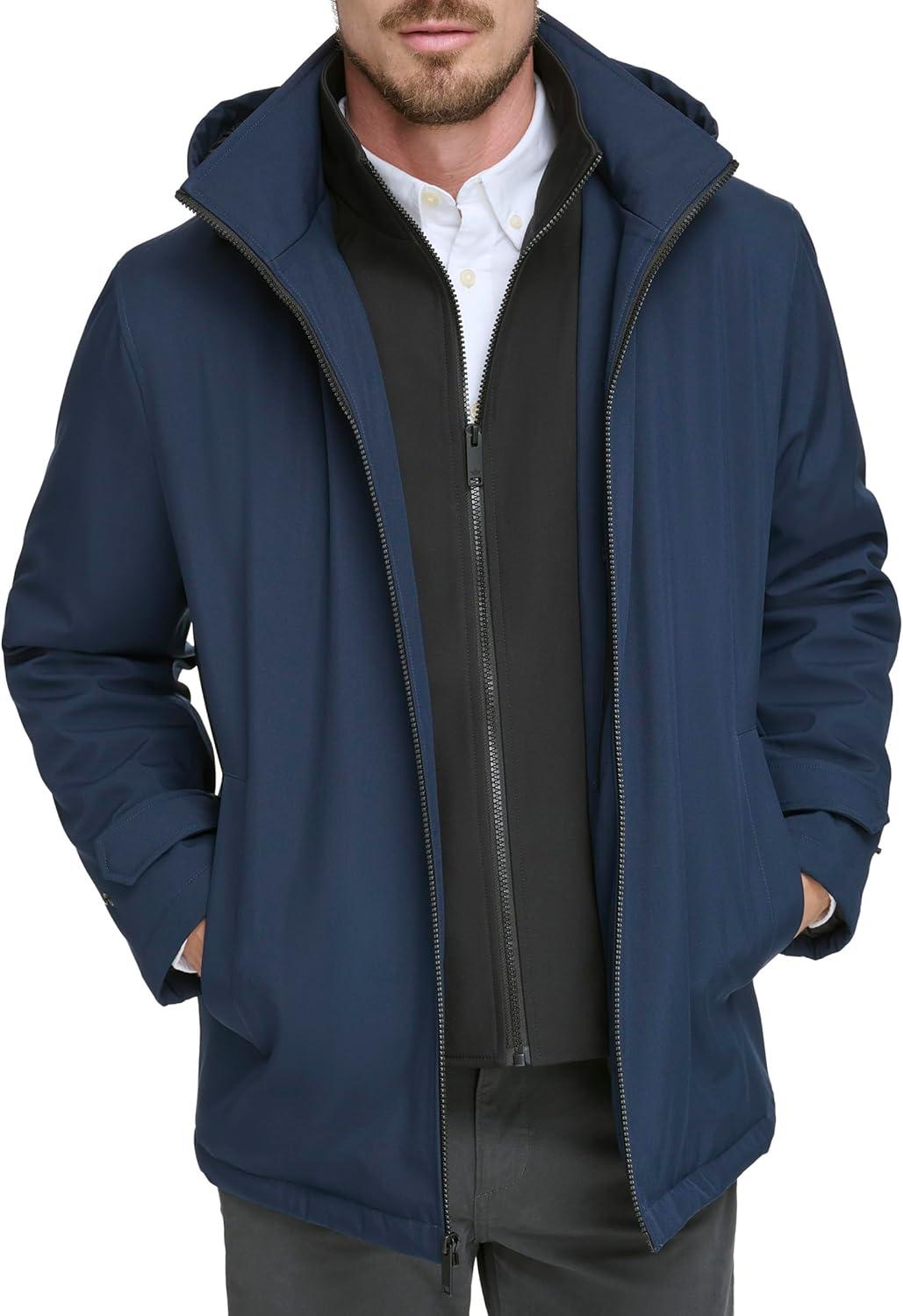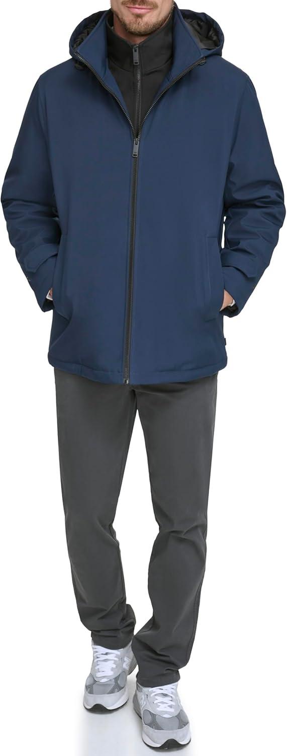 DOCKERS Men’s Dwight Soft Shell Bib Jacket(Navy Hooded)