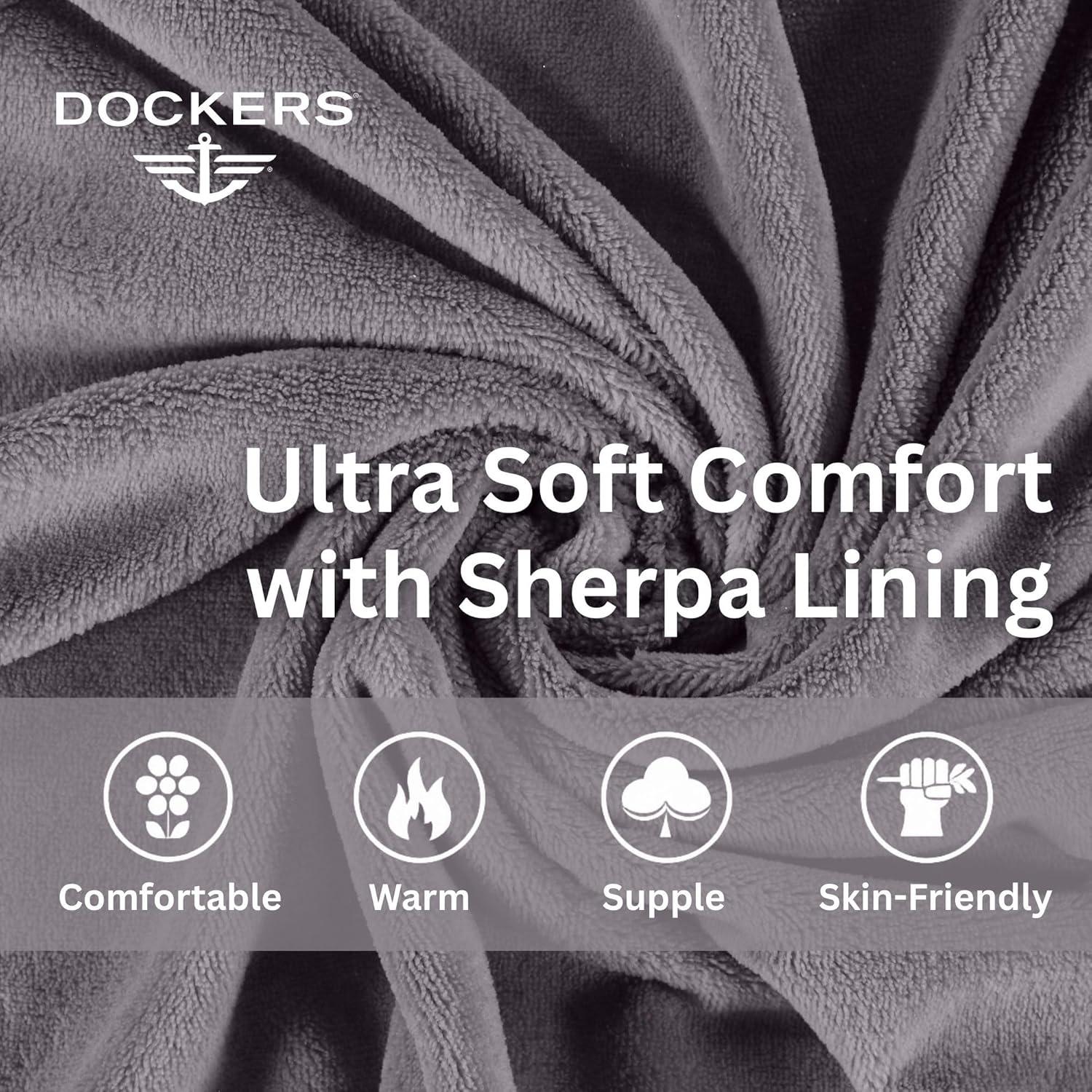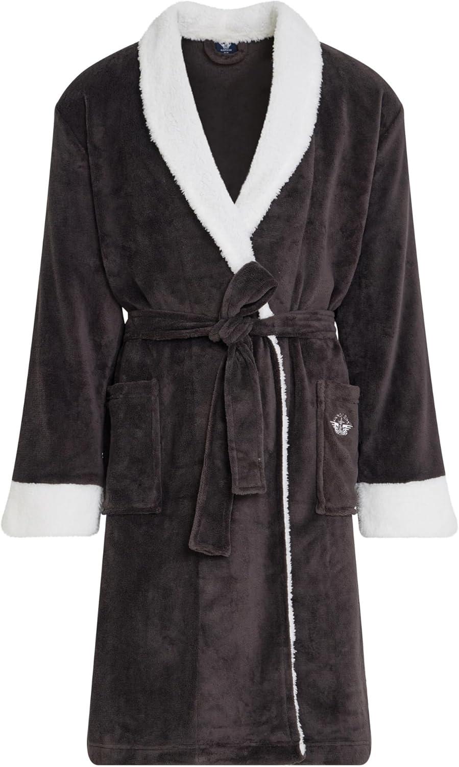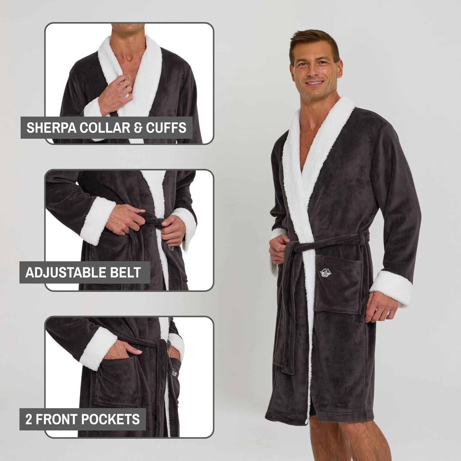 DOCKERS Mens Bath Robe for Men Plush Sherpa Shower Robe with Pockets(Grey)