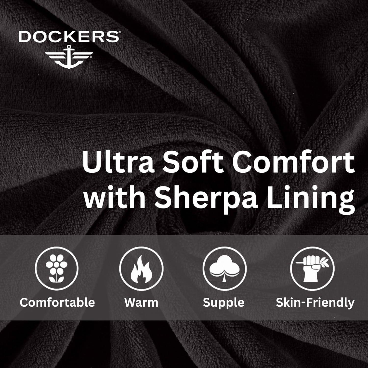 DOCKERS Mens Bath Robe for Men Plush Sherpa Shower Robe with Pockets(Black)