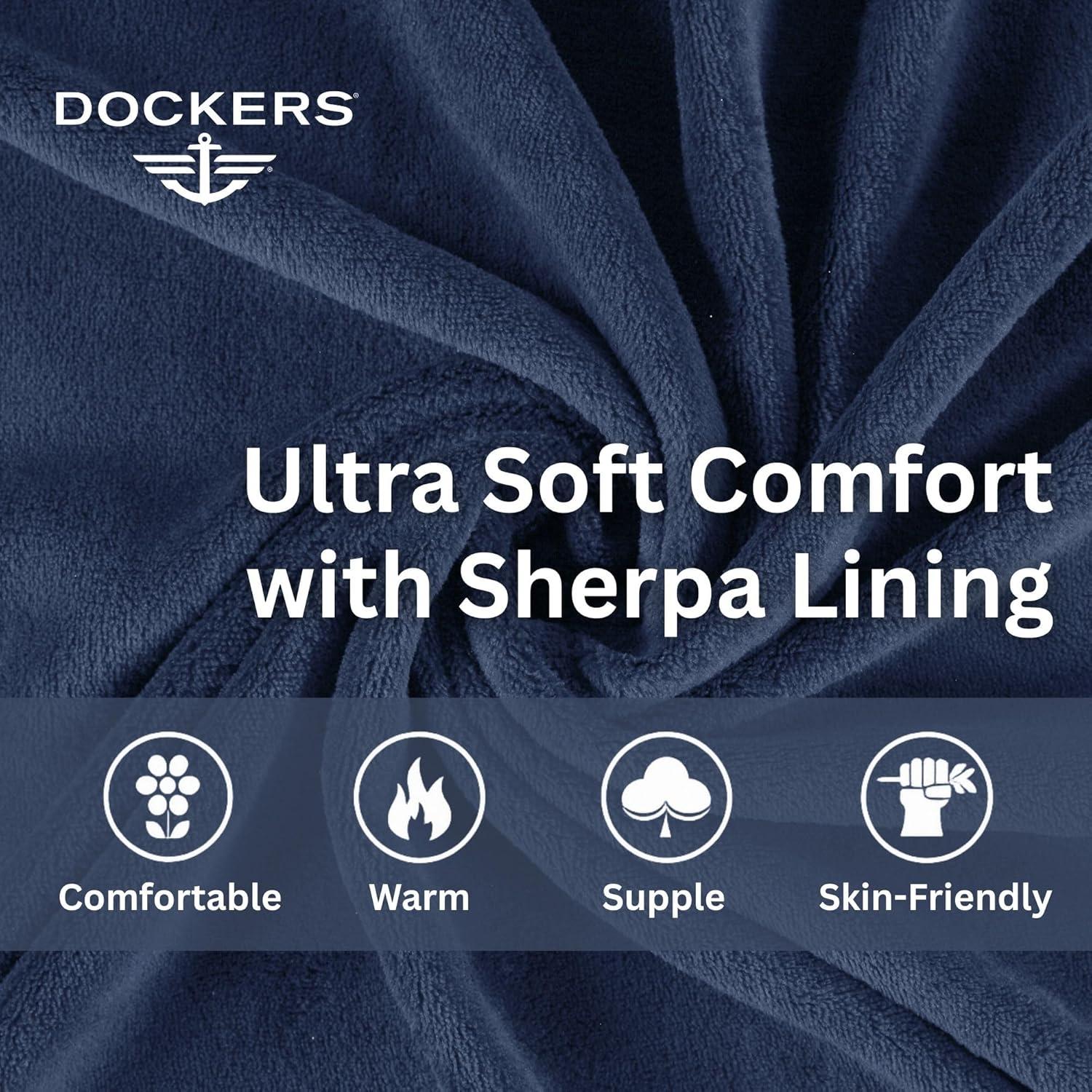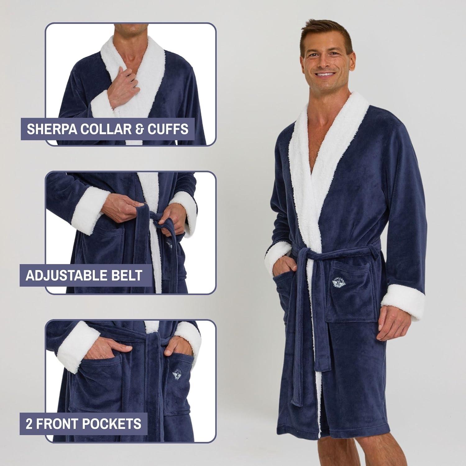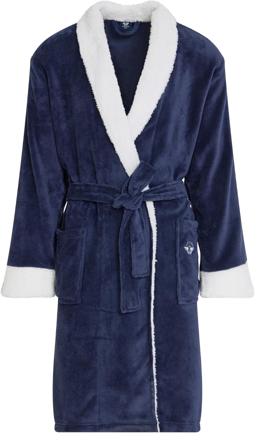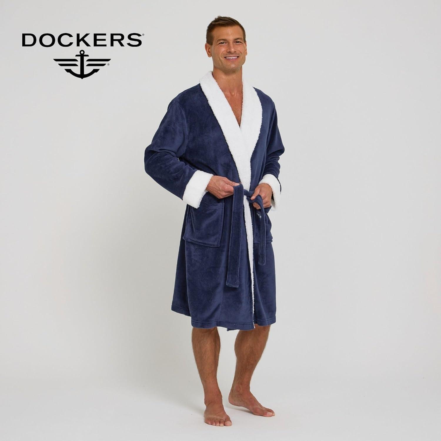DOCKERS Mens Bath Robe for Men Plush Sherpa Shower Robe with Pockets(Navy)