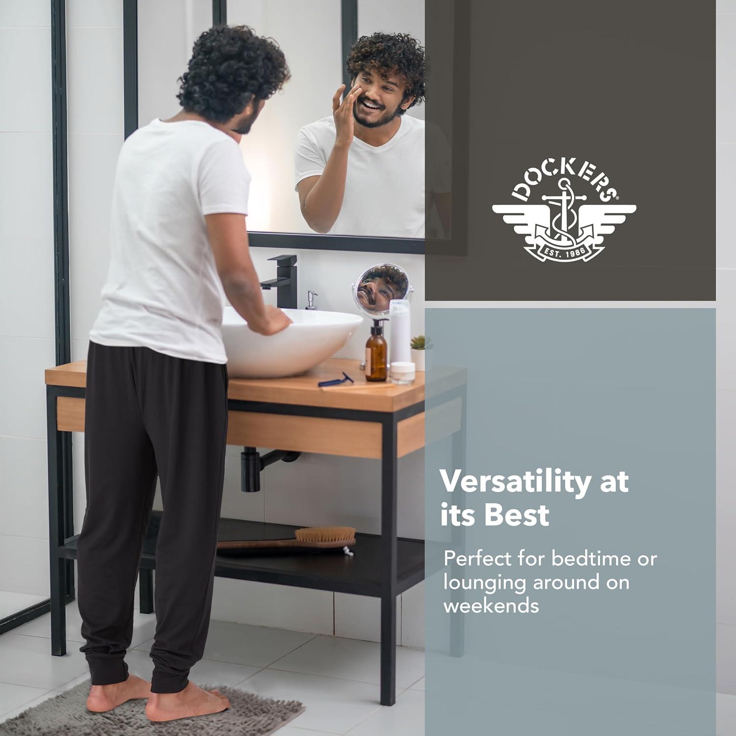 DOCKERS Mens Pajama Pants, Lightweight Lounge Casual Sleep Pants for Men(Black)