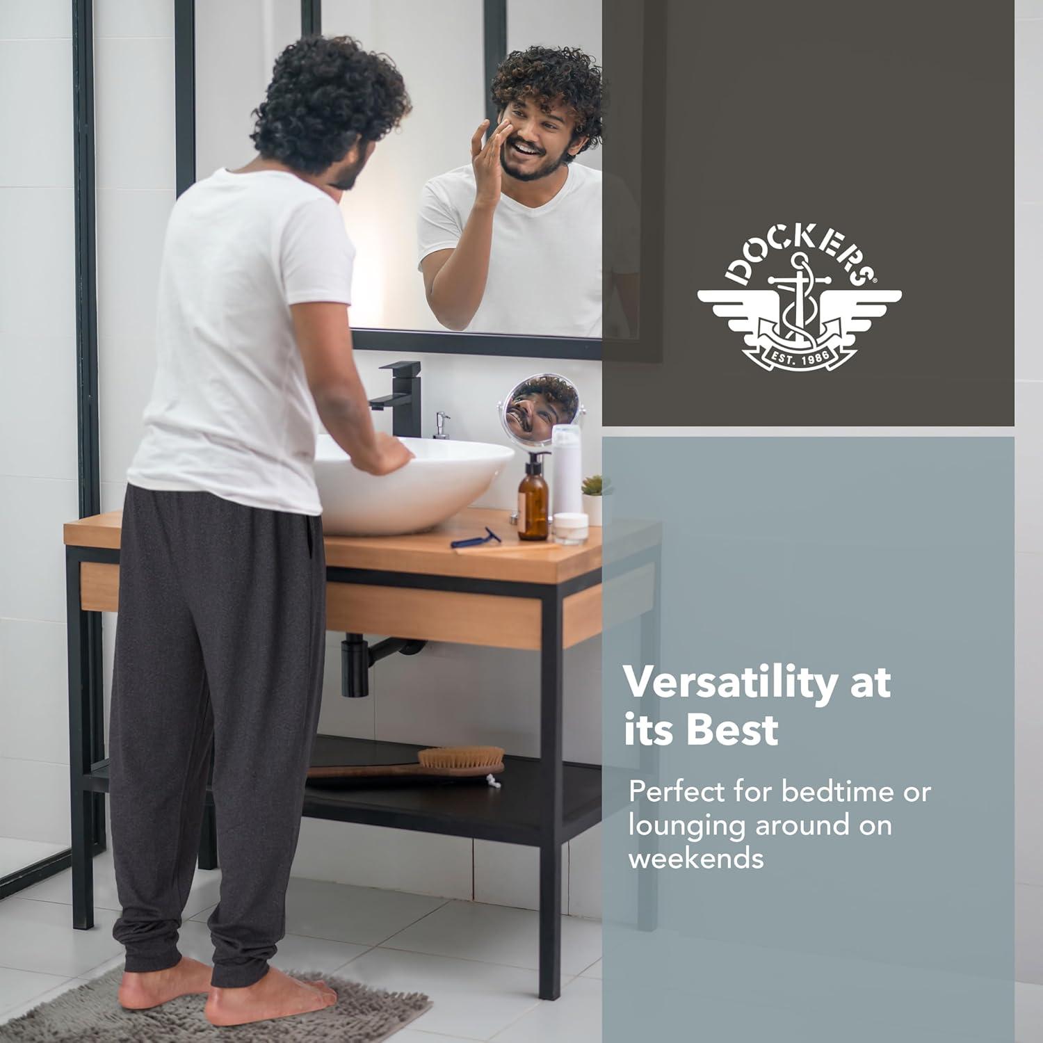 DOCKERS Mens Pajama Pants, Lightweight Lounge Casual Sleep Pants for Men(Charcoal)