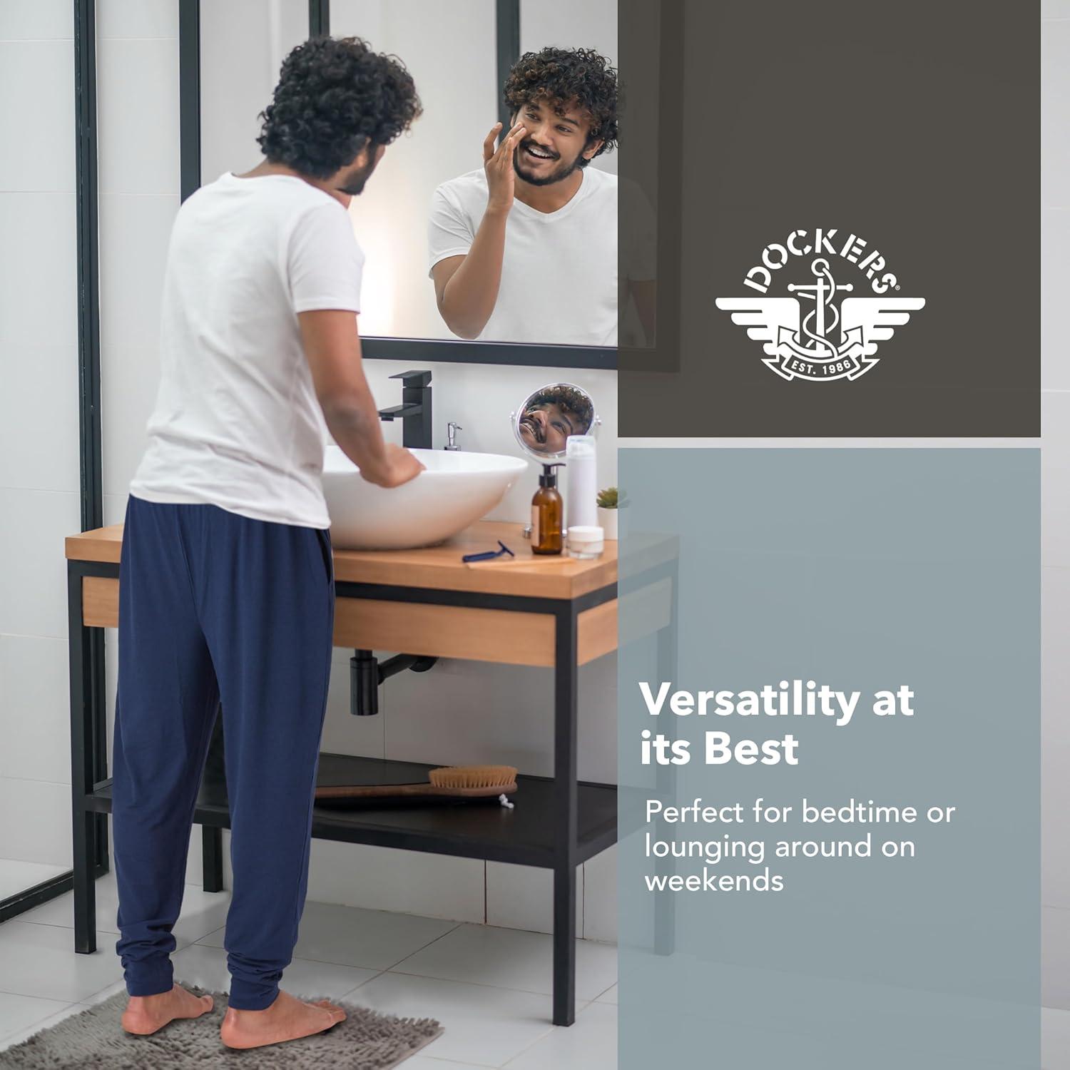 DOCKERS Mens Pajama Pants, Lightweight Lounge Casual Sleep Pants for Men(Navy Heather)