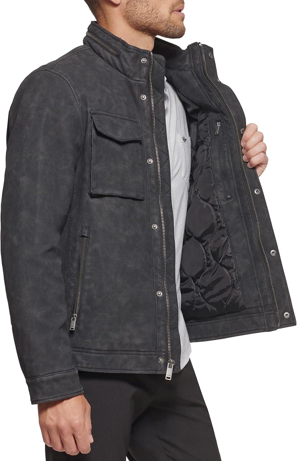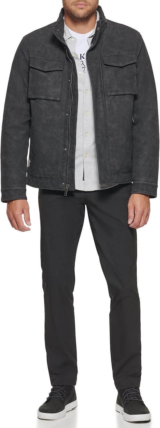Dockers Men’s James Faux Leather Jacket (Regular, Big & Tall Sizes)(Black W. Chest Zip)