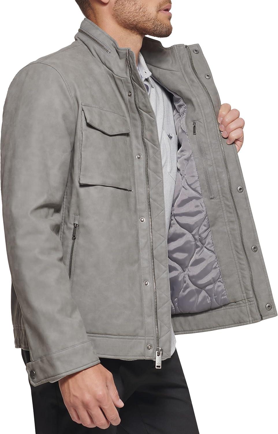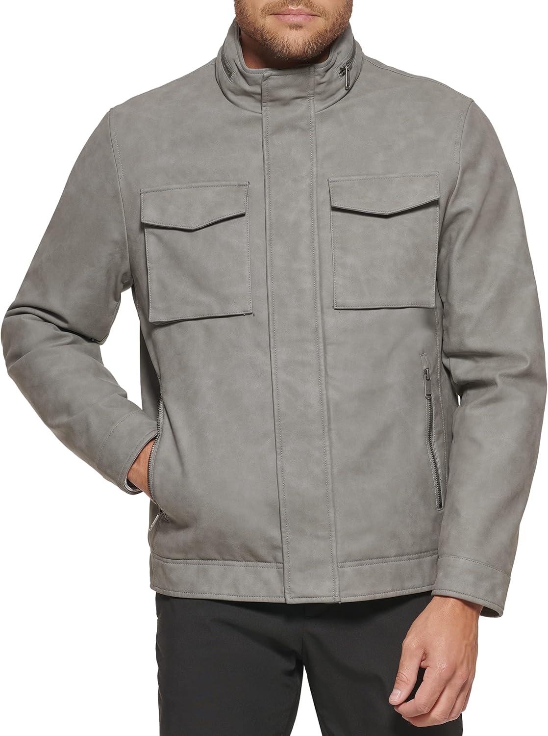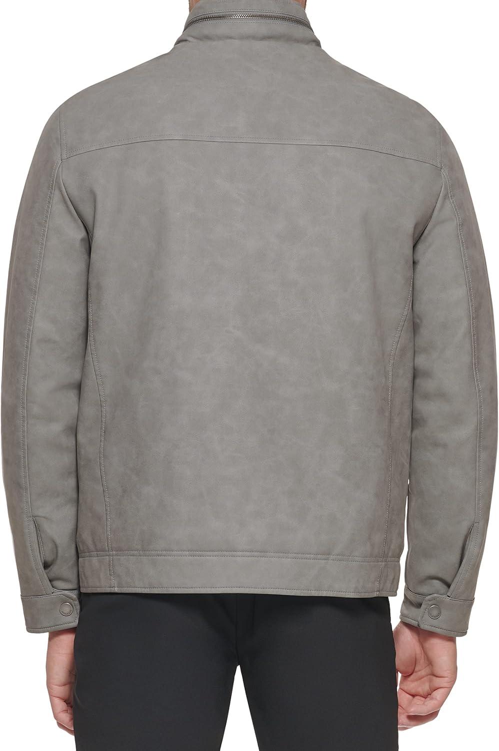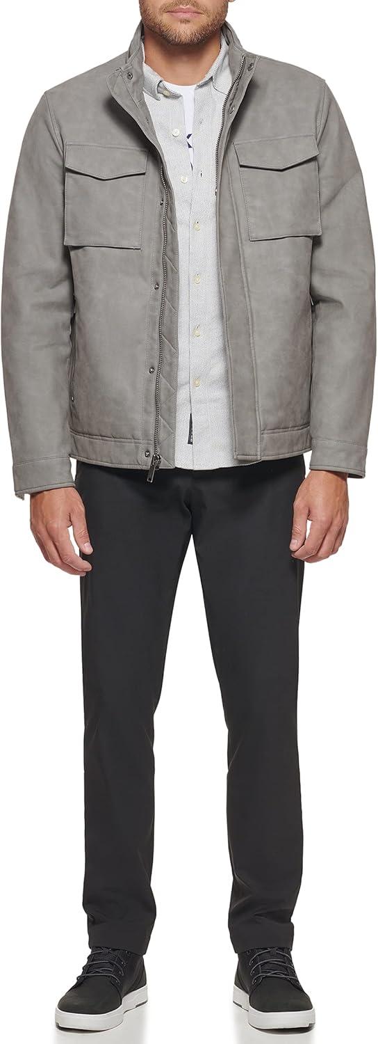 Dockers Men’s James Faux Leather Jacket (Regular, Big & Tall Sizes)(Grey W. Chest Zip)