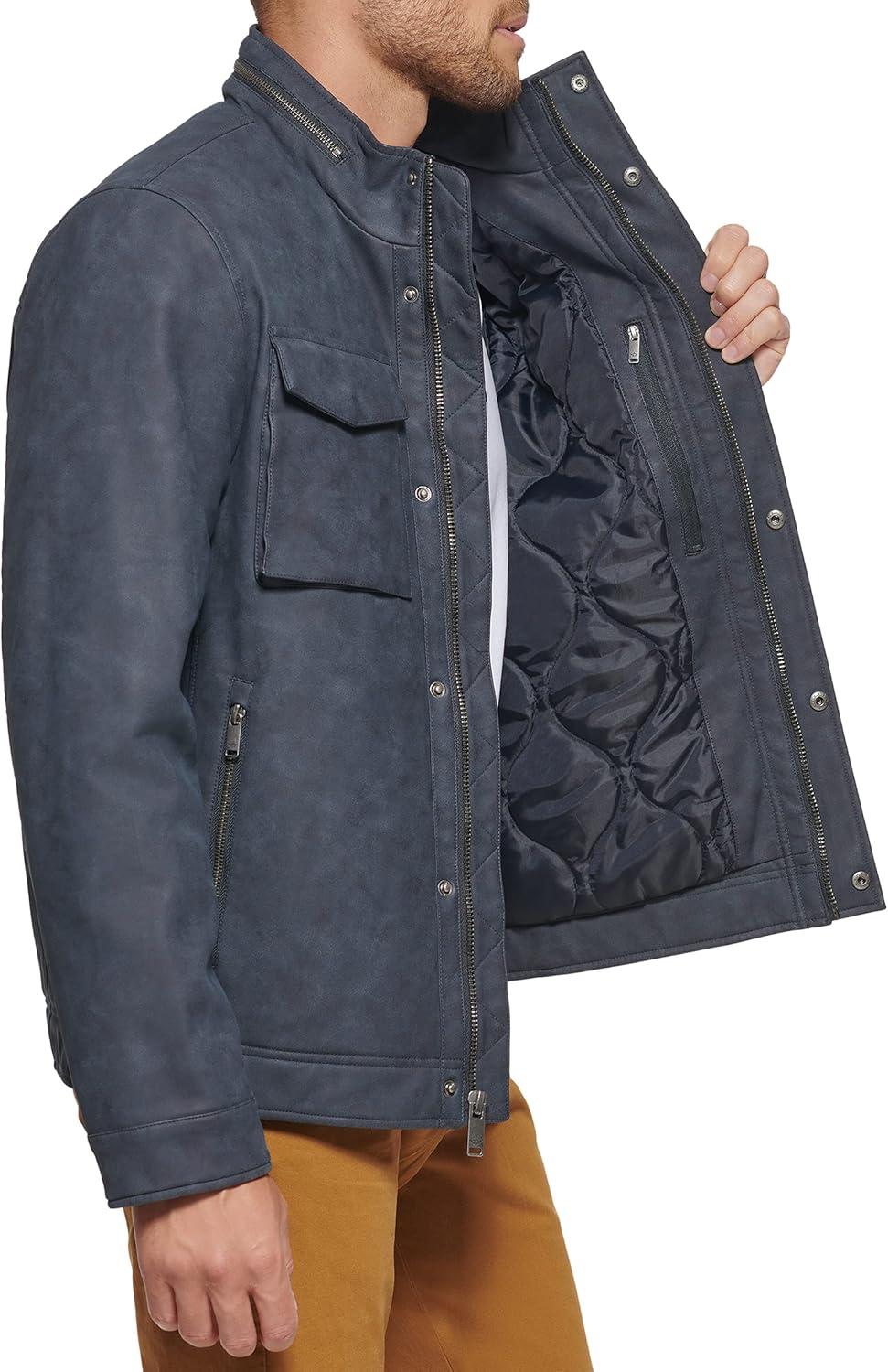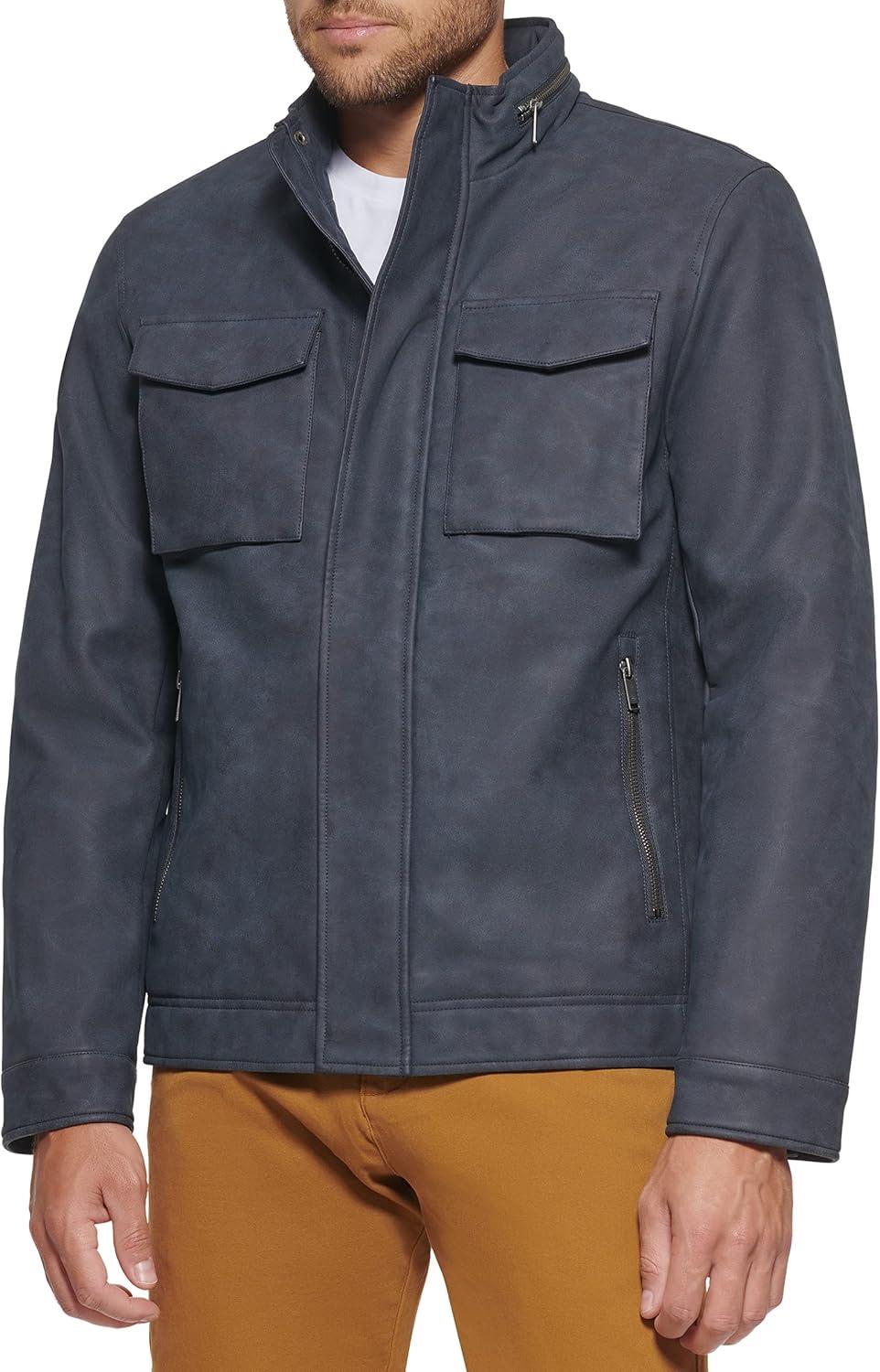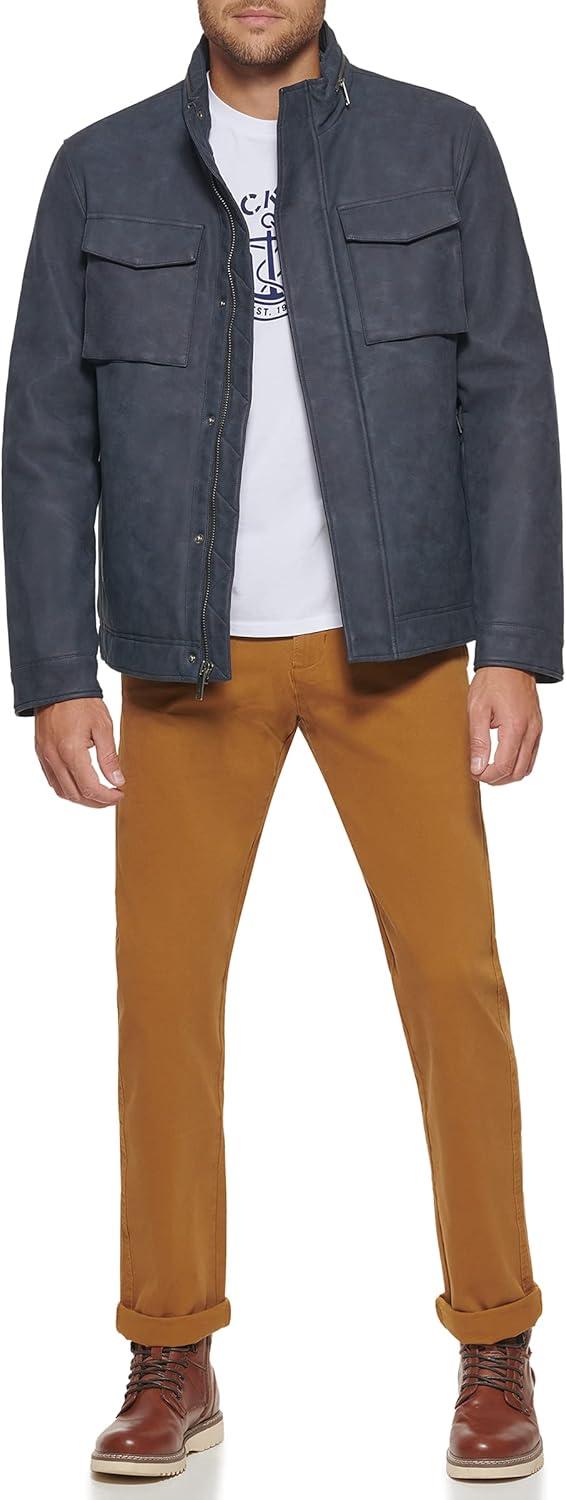 Dockers Men’s James Faux Leather Jacket (Regular, Big & Tall Sizes)(Navy W. Chest Zip)