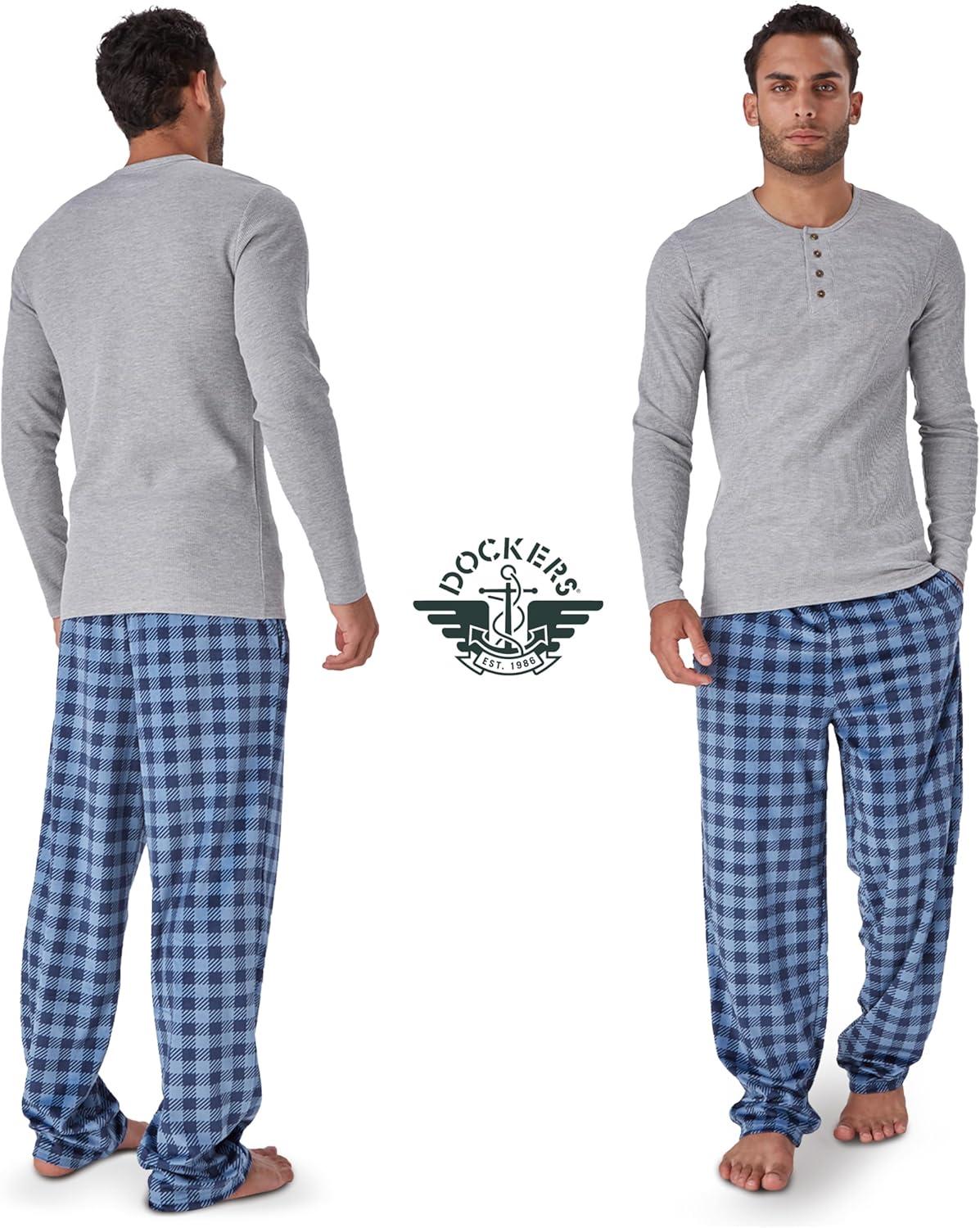 DOCKERS Men’s Pajama Sets, Plaid PJ Pants for Men Lounge Set Long Sleeve Shirt Plaid Bottoms(Heather Grey)