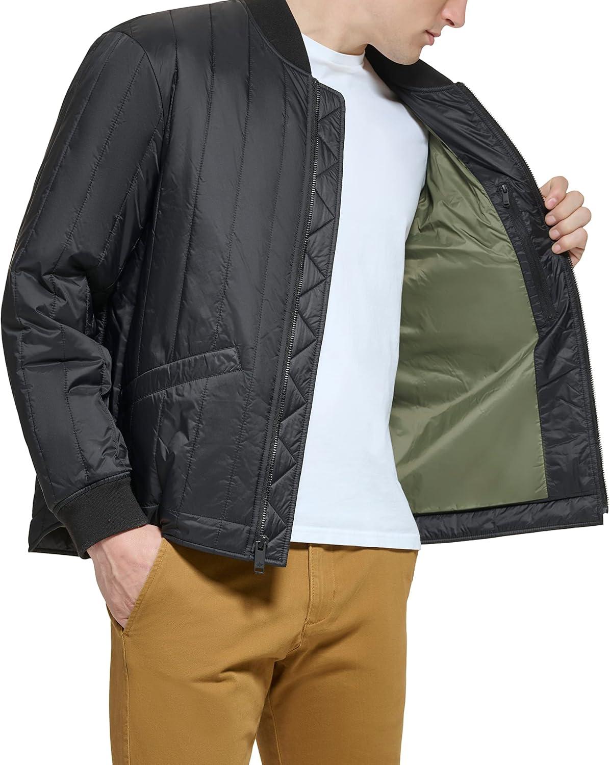 DOCKERS mens Channel Quilted Open Bottom Bomber Jacket(Black)