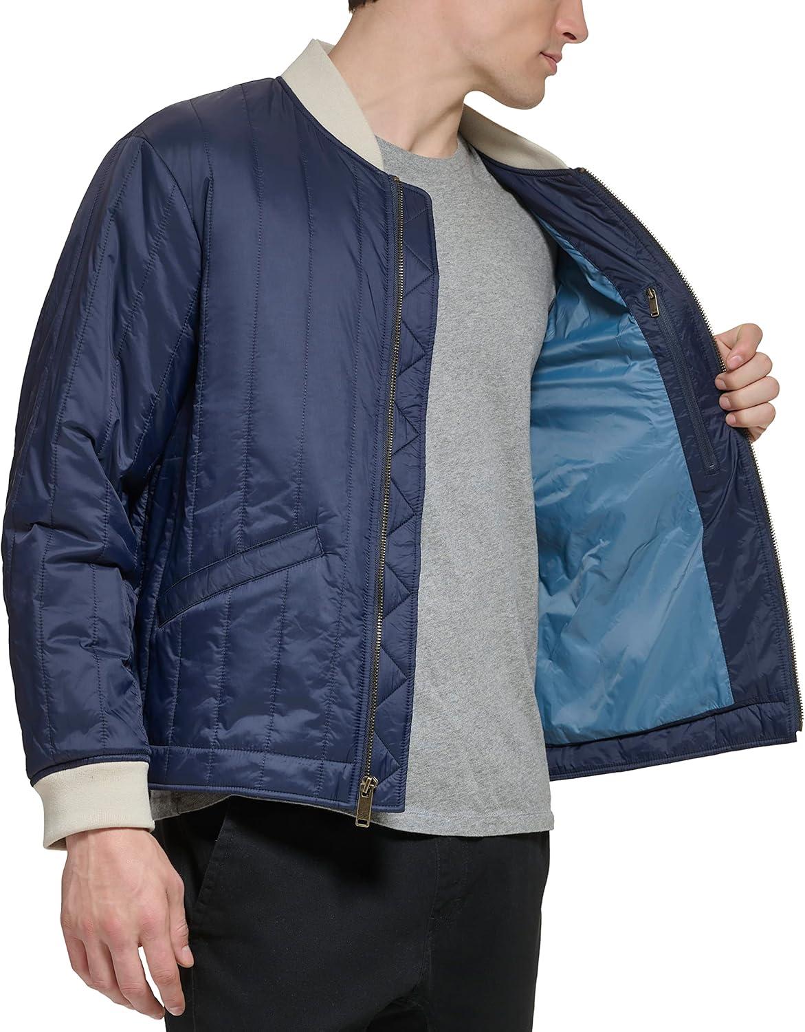 DOCKERS mens Channel Quilted Open Bottom Bomber Jacket(Navy)