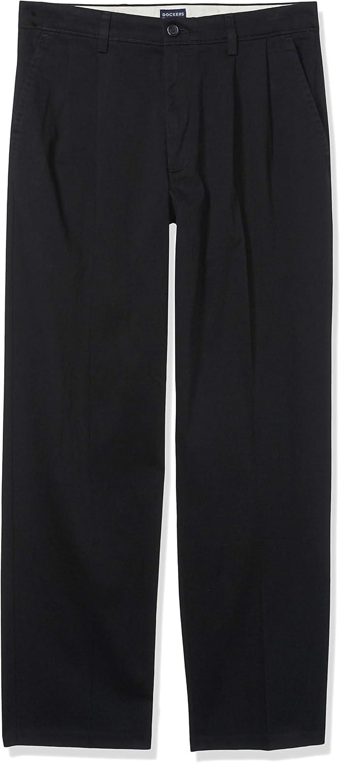 Dockers Men’s Classic Fit Easy Khaki Pants – Pleated (Standard and Big & Tall)(Black)