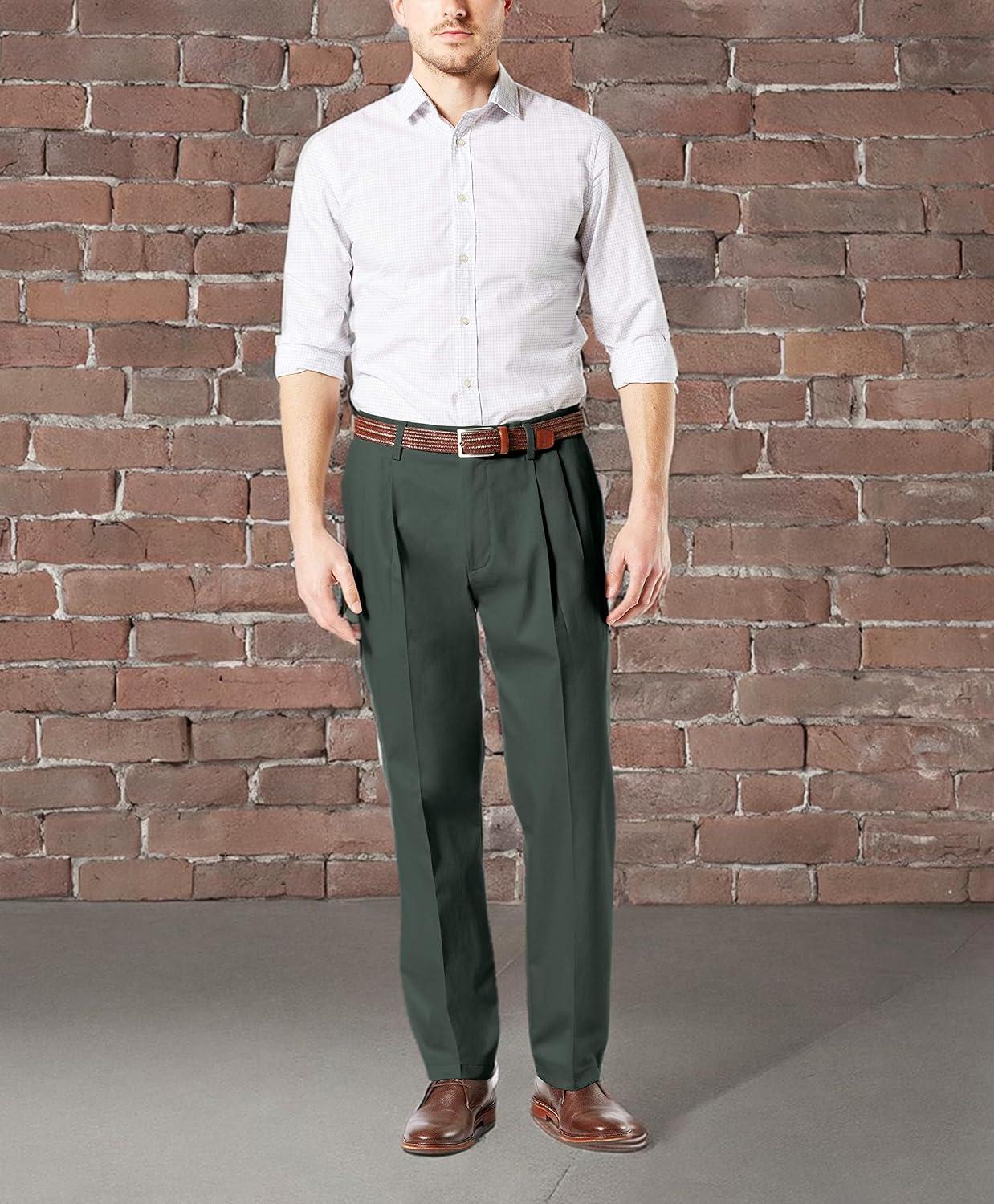 Dockers Men’s Classic Fit Signature Lux Cotton Stretch Pants-Pleated (Regular and Big & Tall)(Olive Grove)