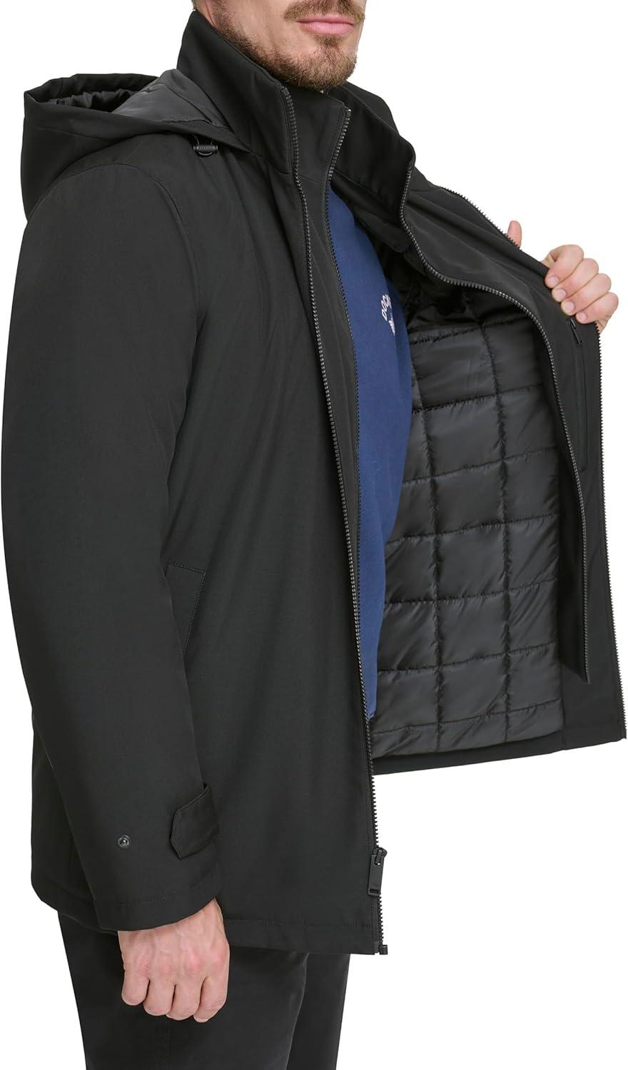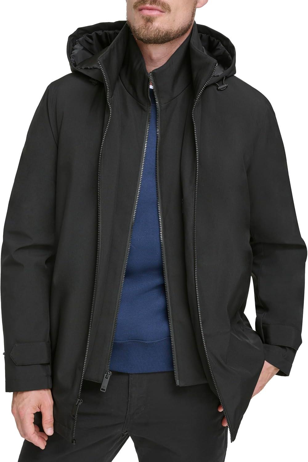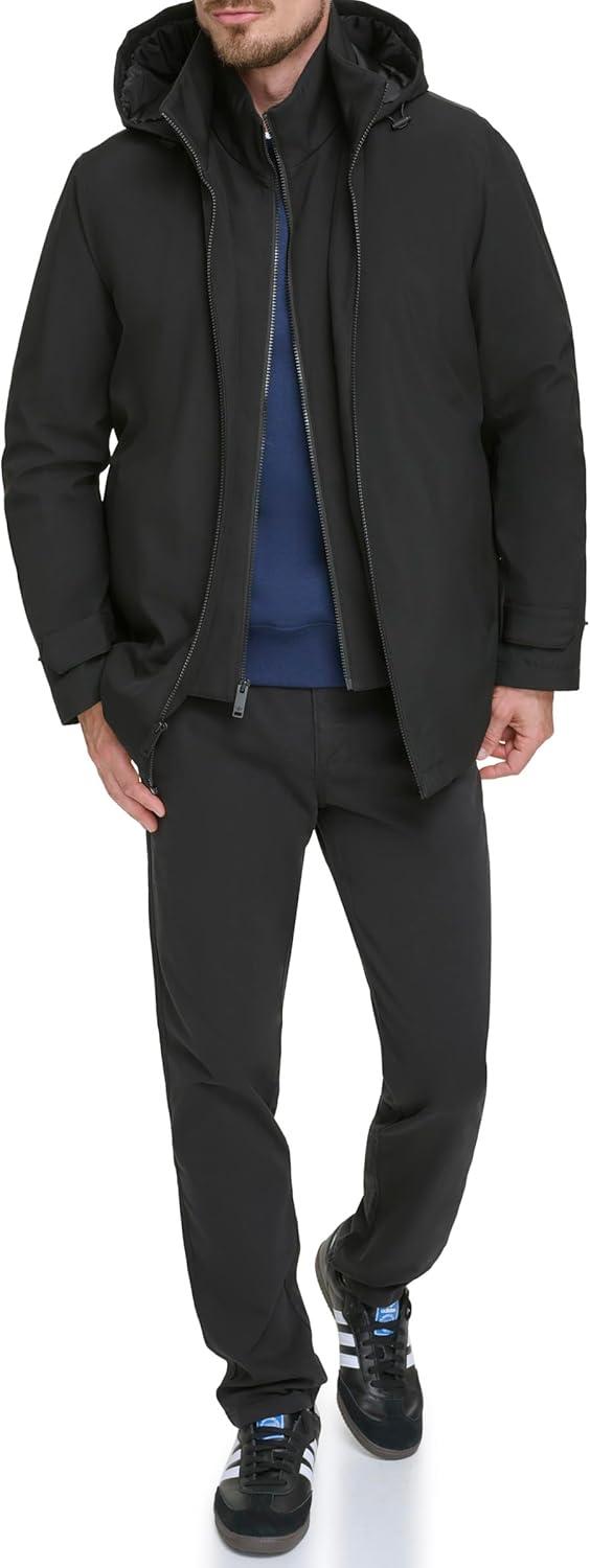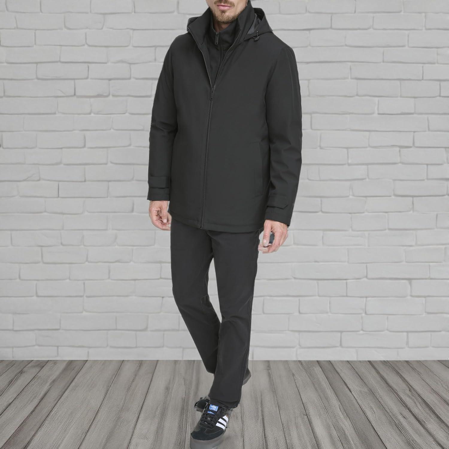 DOCKERS Men’s Dwight Soft Shell Bib Jacket(Black Hooded)