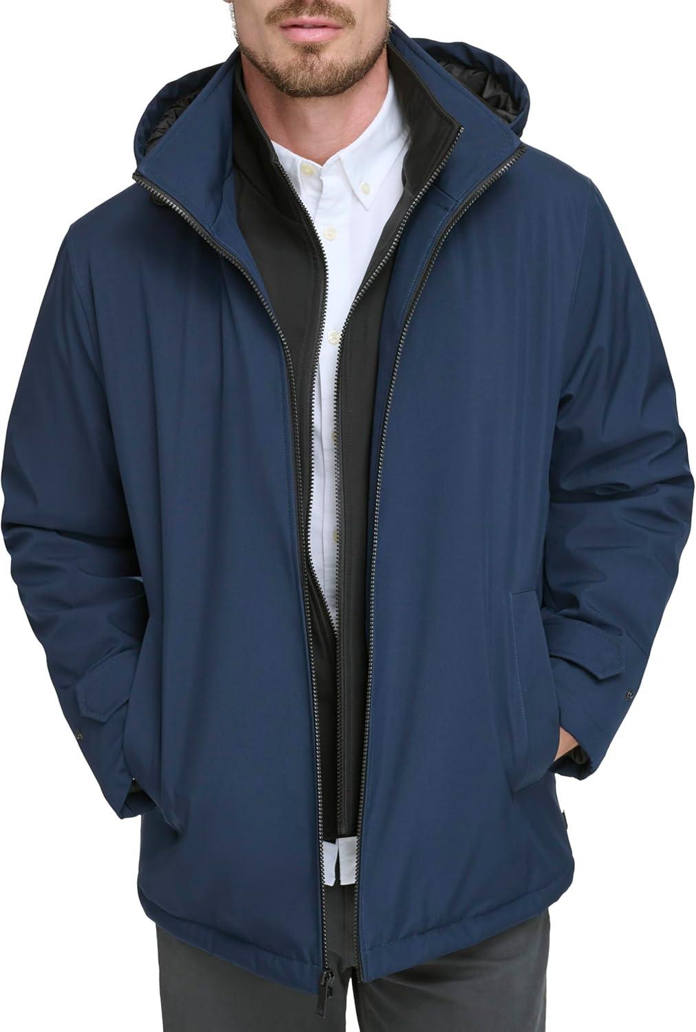 DOCKERS Men’s Dwight Soft Shell Bib Jacket(Navy Hooded)
