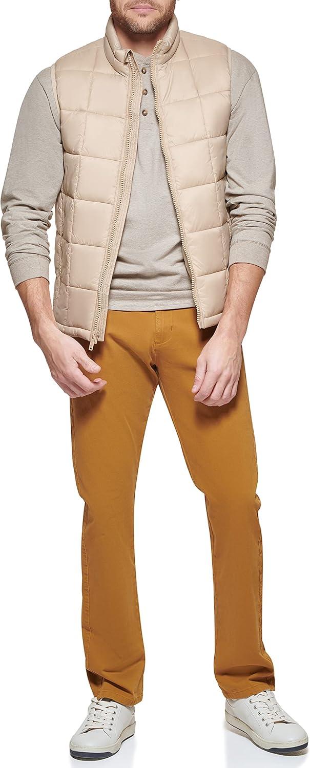 Dockers mens Men’s Box Quilted Puffer Vest(Khaki)