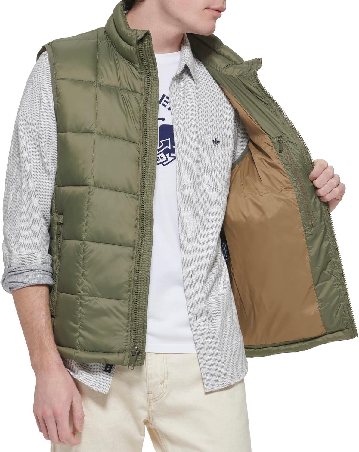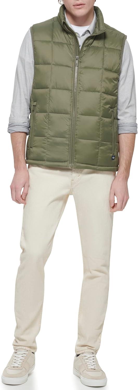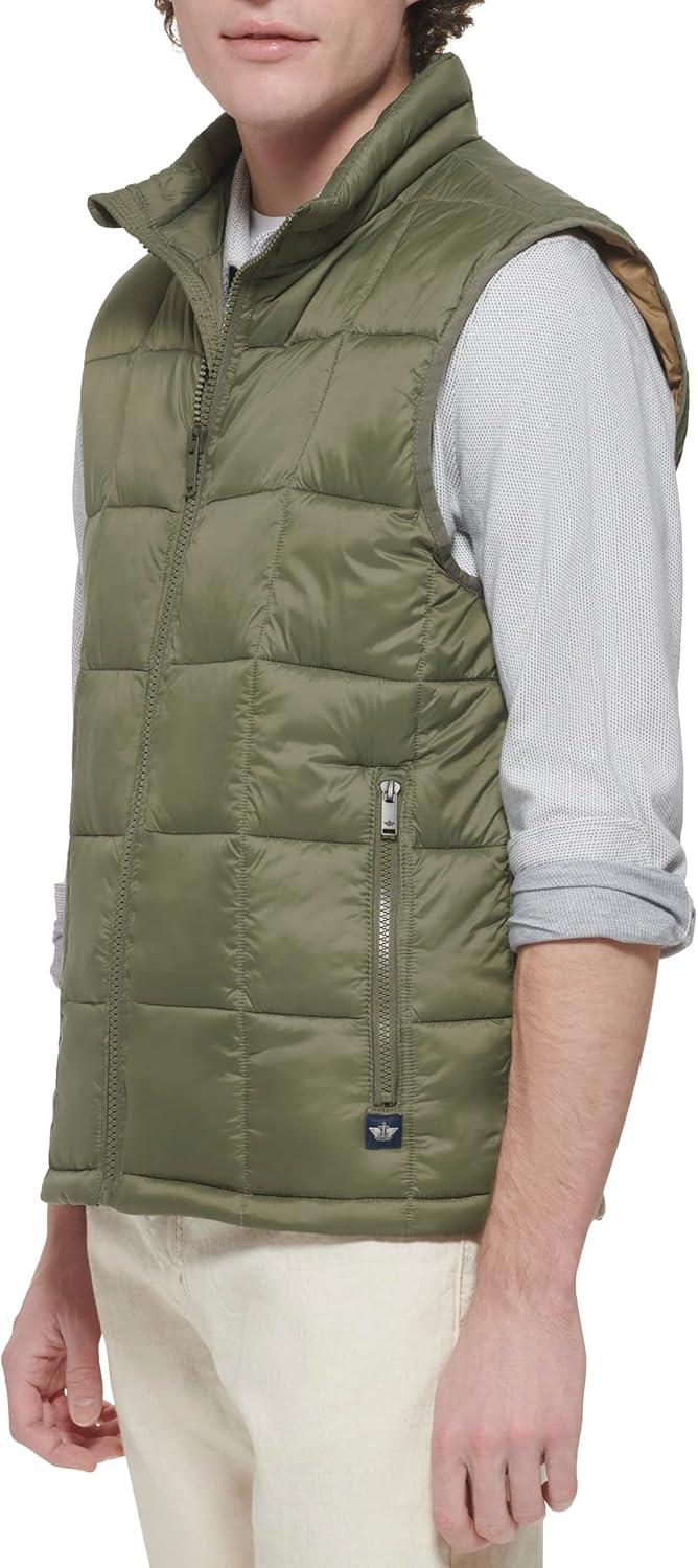 Dockers mens Men’s Box Quilted Puffer Vest(Olive)