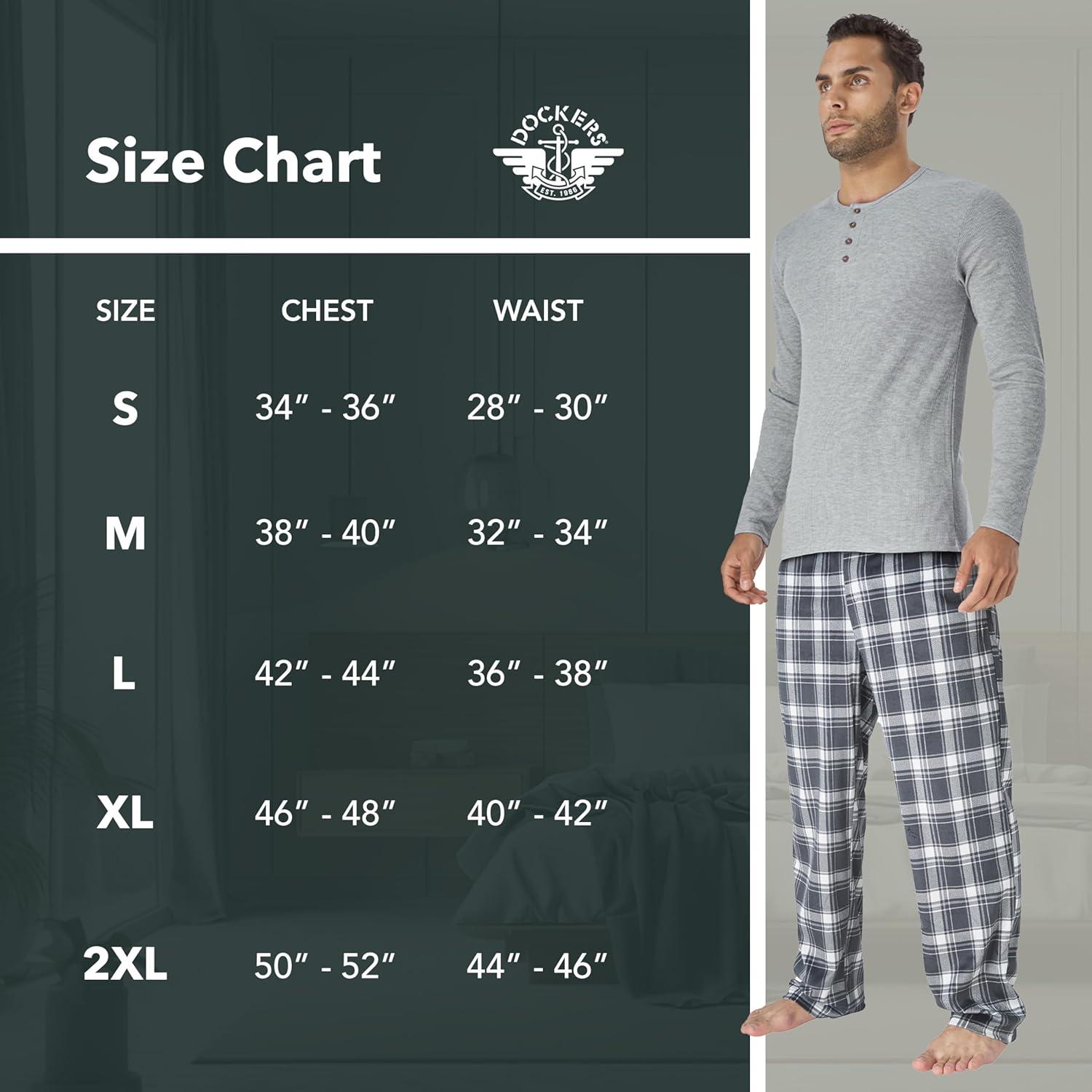 DOCKERS Men’s Pajama Sets, Plaid PJ Pants for Men Lounge Set Long Sleeve Shirt Plaid Bottoms(Dark Grey)