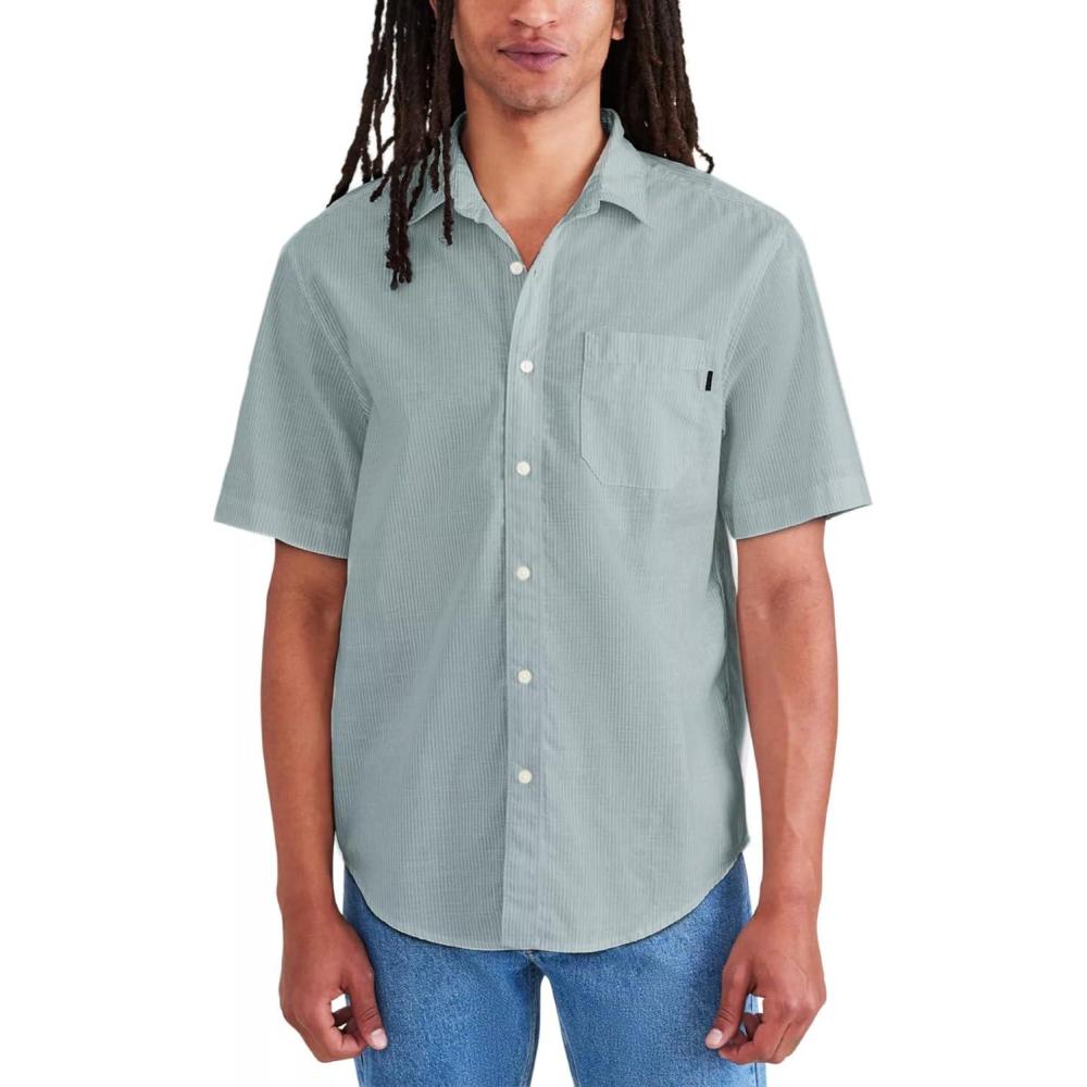 DOCKERS Men’s Regular Fit Short Sleeve Casual Shirt (Standard and Big & Tall)(Green Harbor Grey)