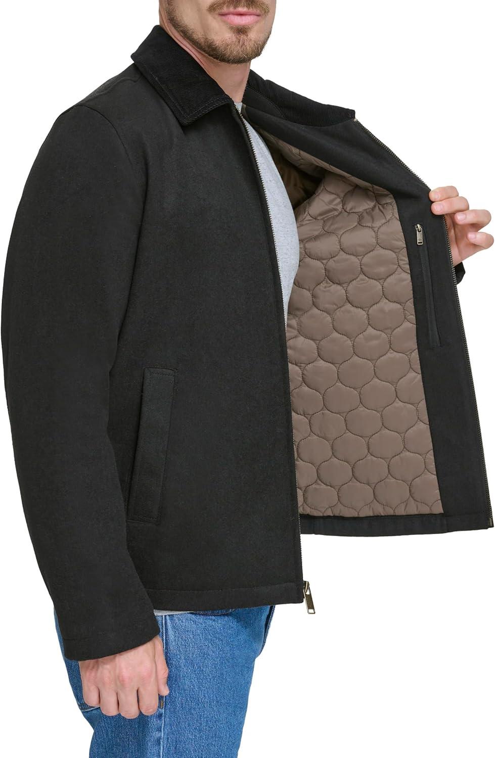 DOCKERS Men’s Wool Blend Zip Up Jacket with Quilted Bib(Black (Without Bib))