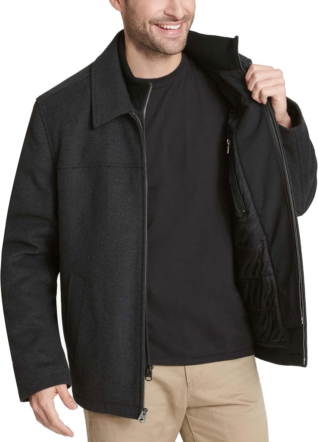 DOCKERS Men’s Wool Blend Zip Up Jacket with Quilted Bib(Charcoal/Softshell Bib)