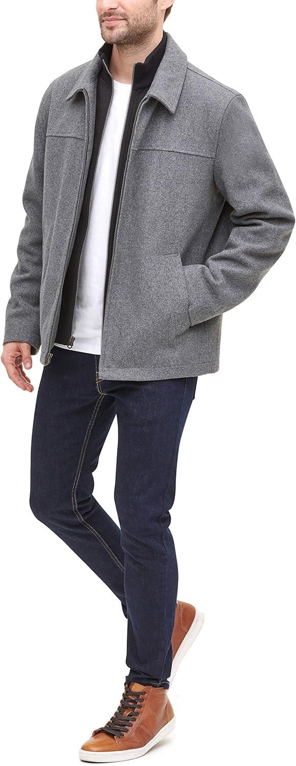DOCKERS Men’s Wool Blend Zip Up Jacket with Quilted Bib(Light Grey/Softshell Bib)