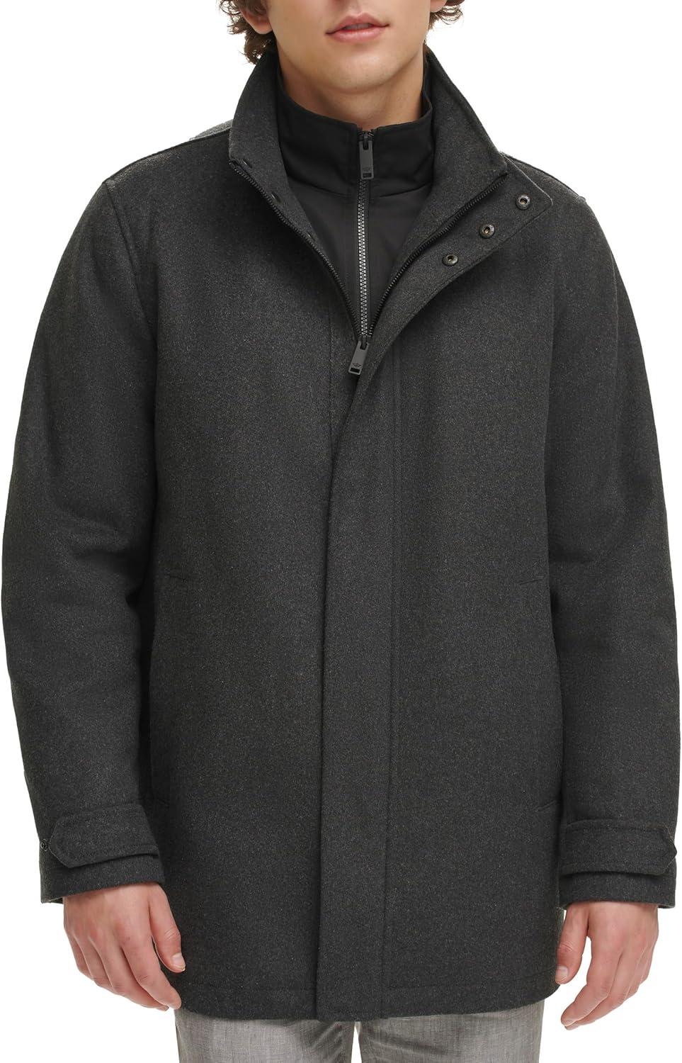 DOCKERS Mens Wool Melton Two Pocket Full Length Duffle Coat(Charcoal)