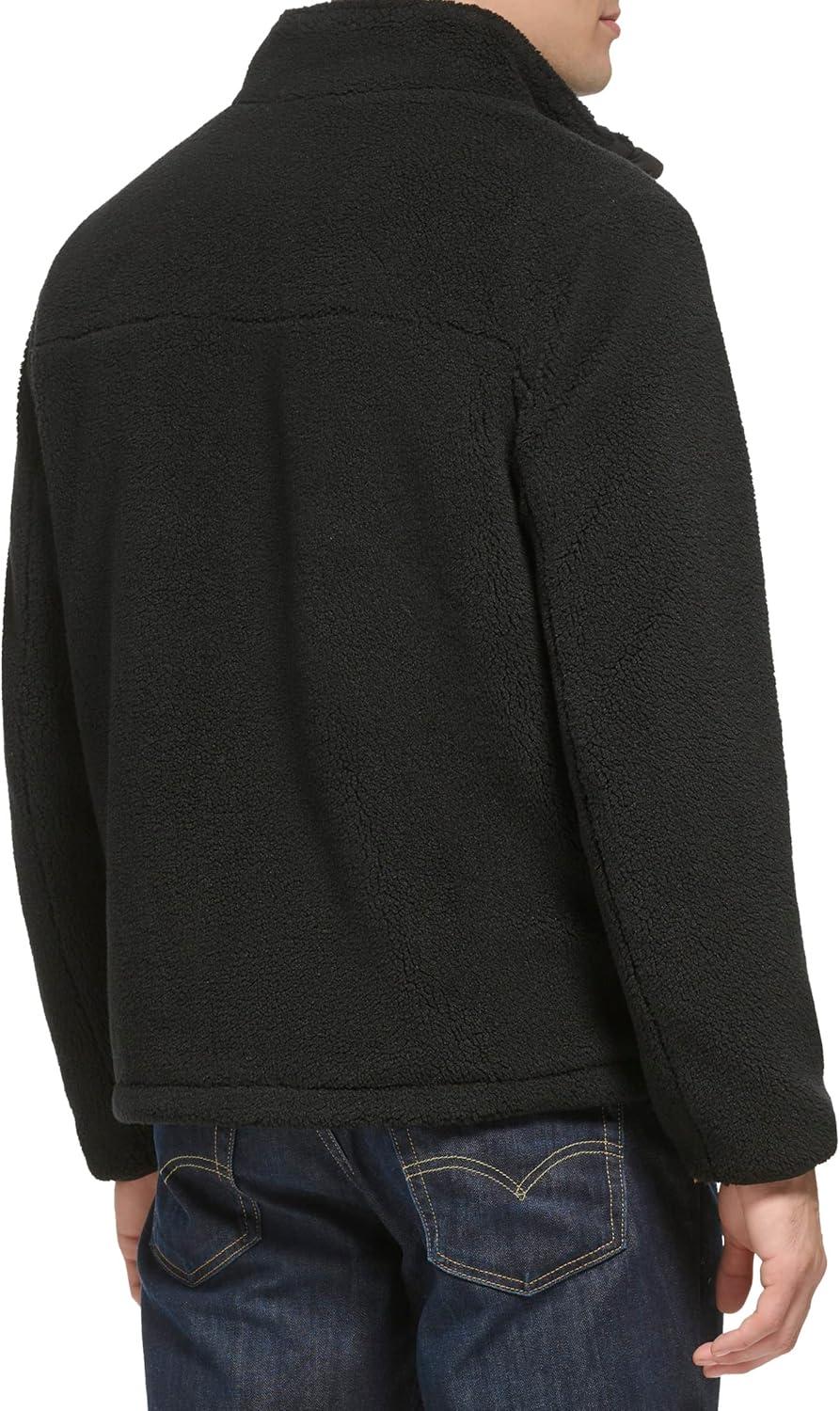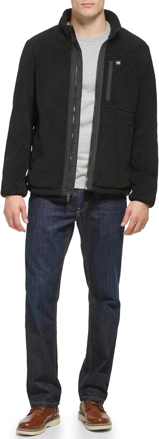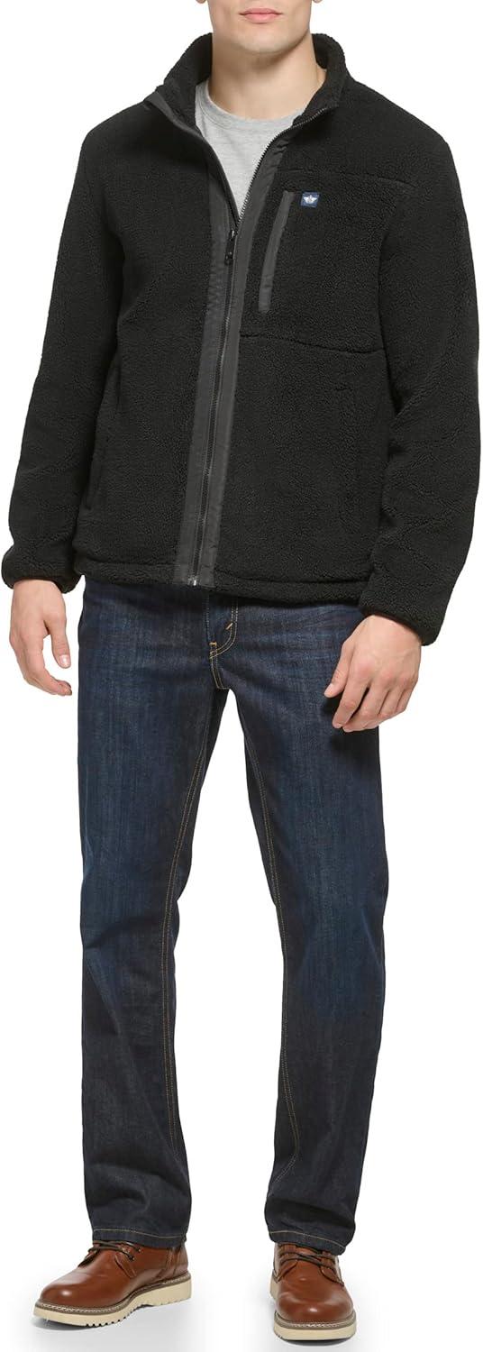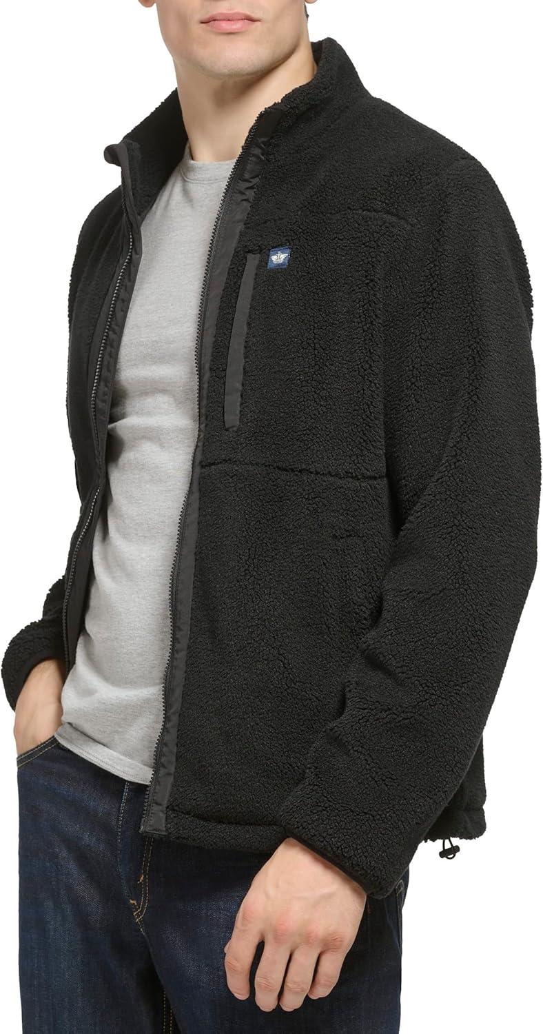 DOCKERS mens Zip Front Sherpa Fleece Jacket With Chest Pocket(Black)