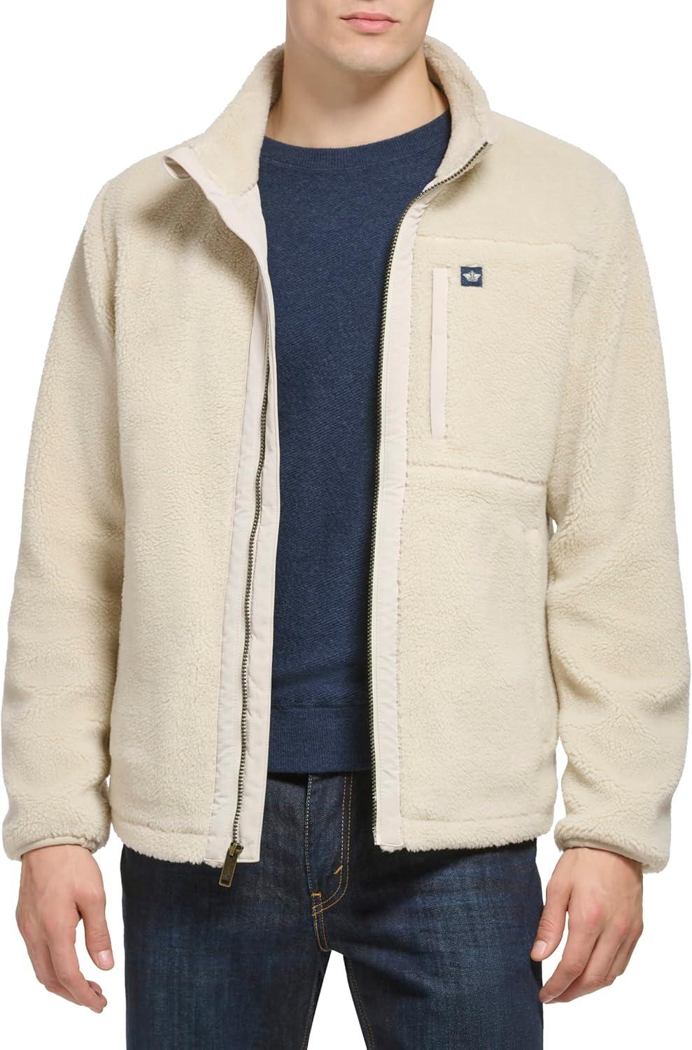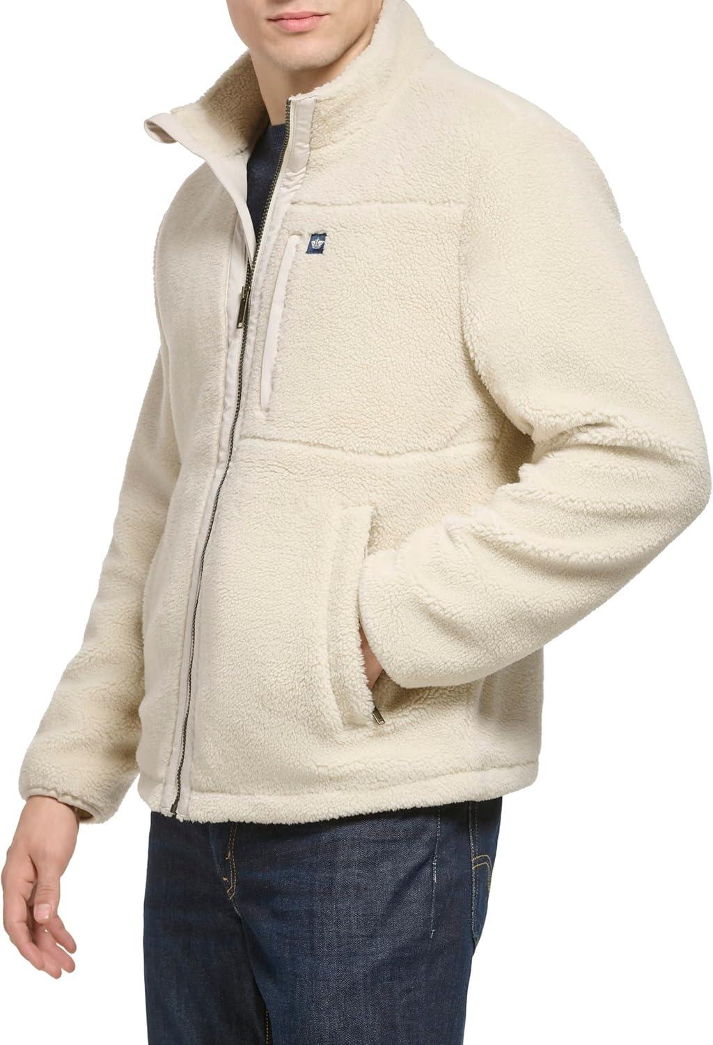 DOCKERS mens Zip Front Sherpa Fleece Jacket With Chest Pocket(Khaki)