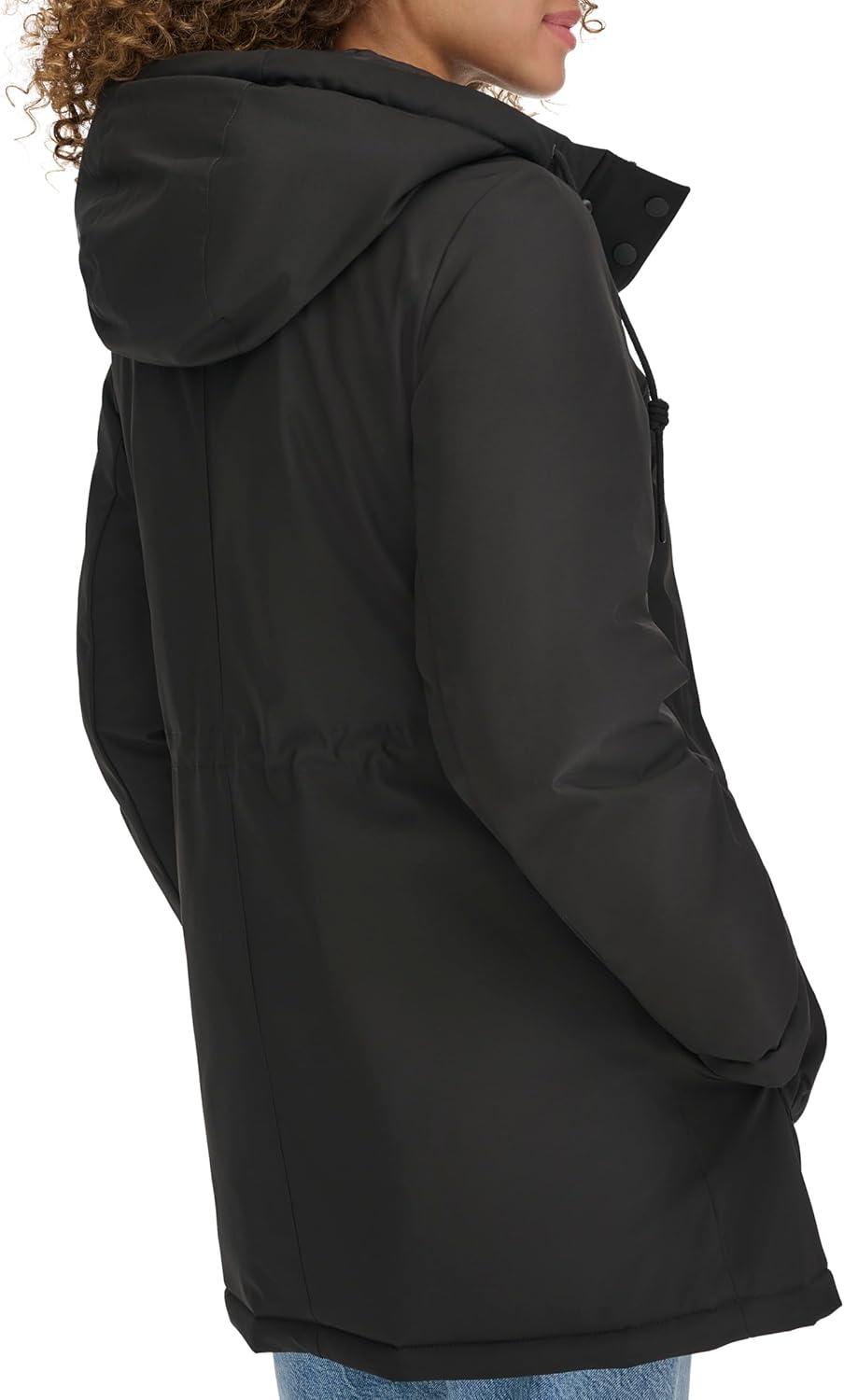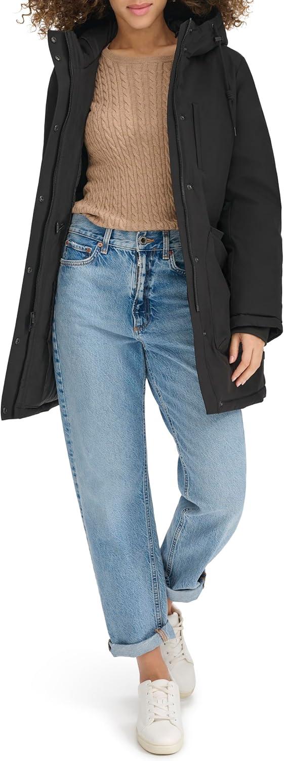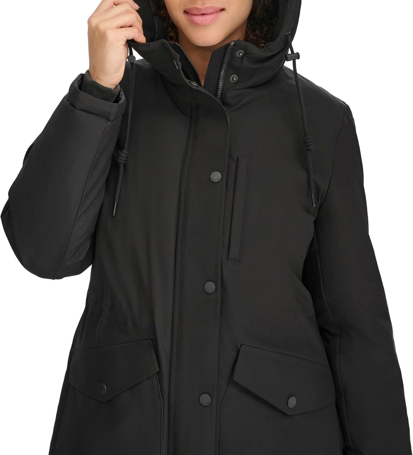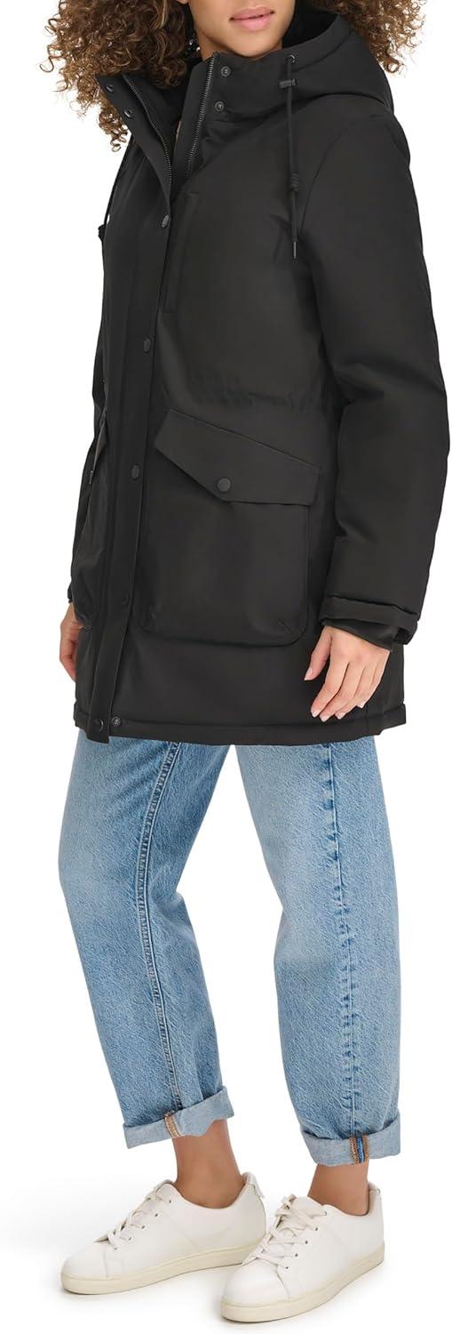 DOCKERS womens Cinched Waist Hooded Parka Jacket With Quilted Interior(Black)