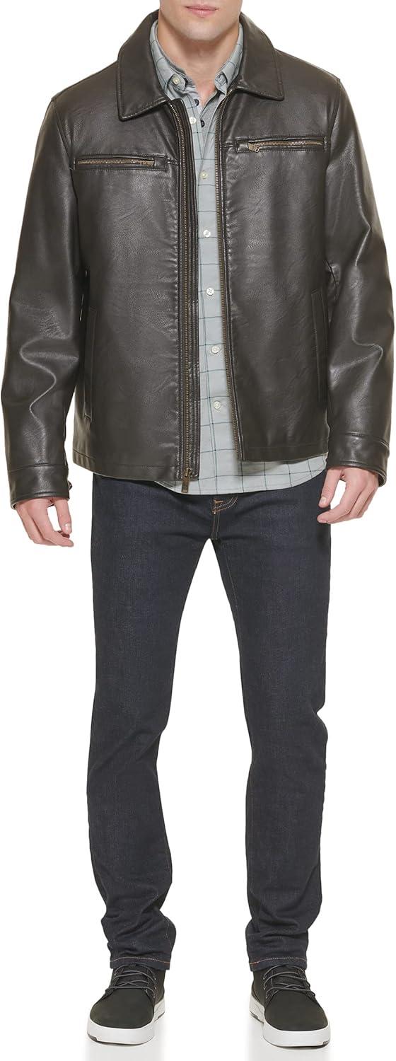 Dockers Men’s James Faux Leather Jacket (Regular, Big & Tall Sizes)(Dark Brown W. Chest Zip)