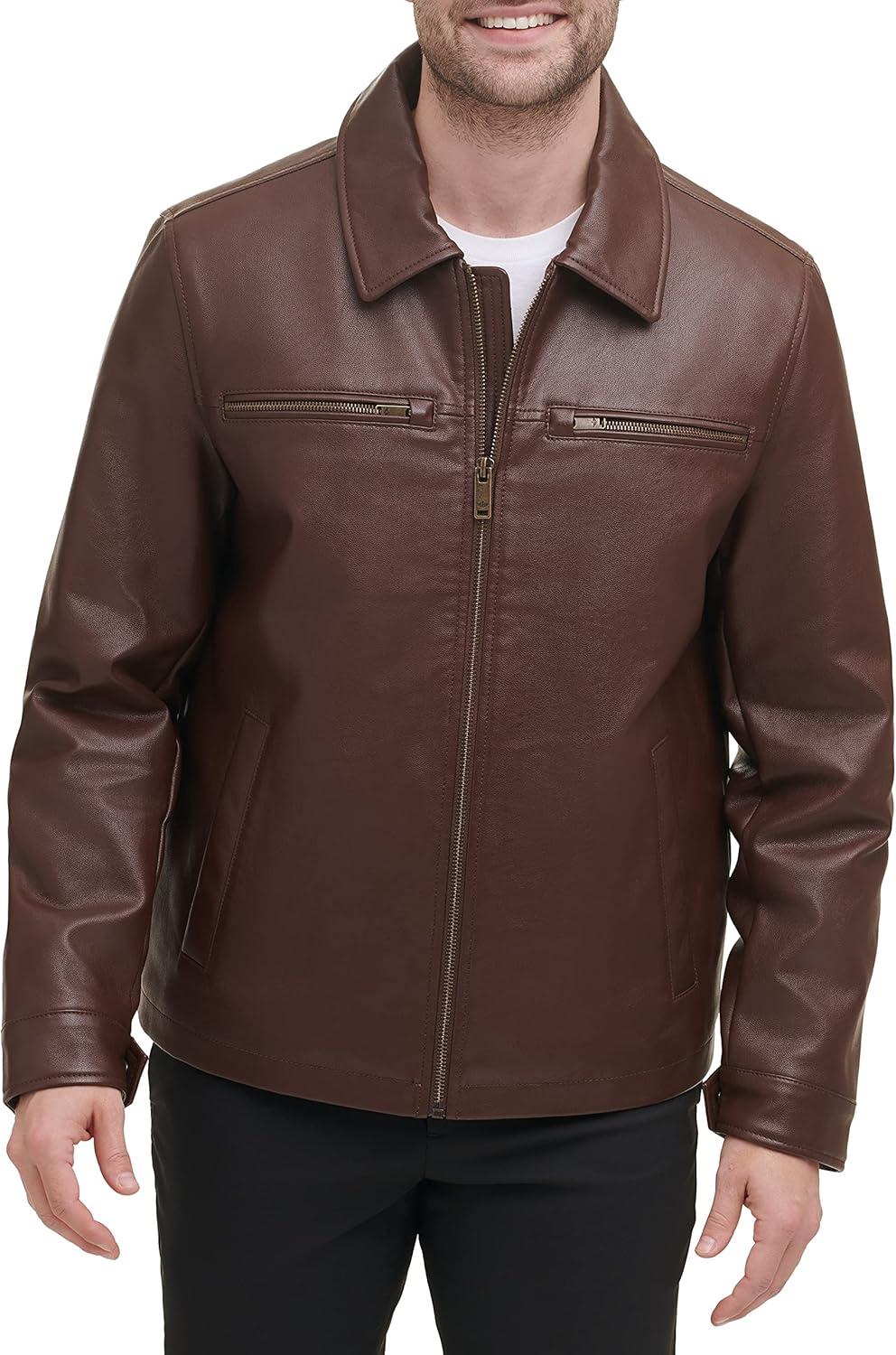 Dockers Men’s James Faux Leather Jacket (Regular, Big & Tall Sizes)(Sienna Brown W. Chest Zip)